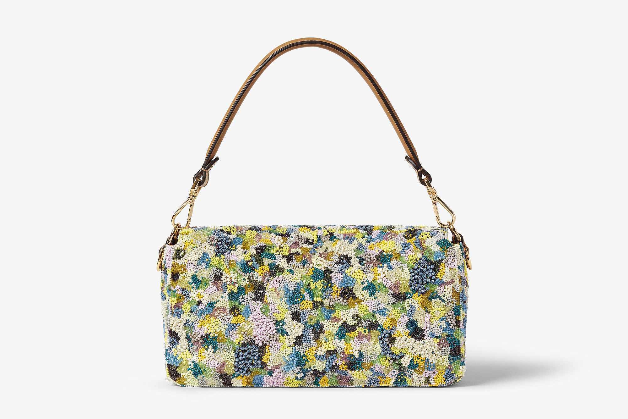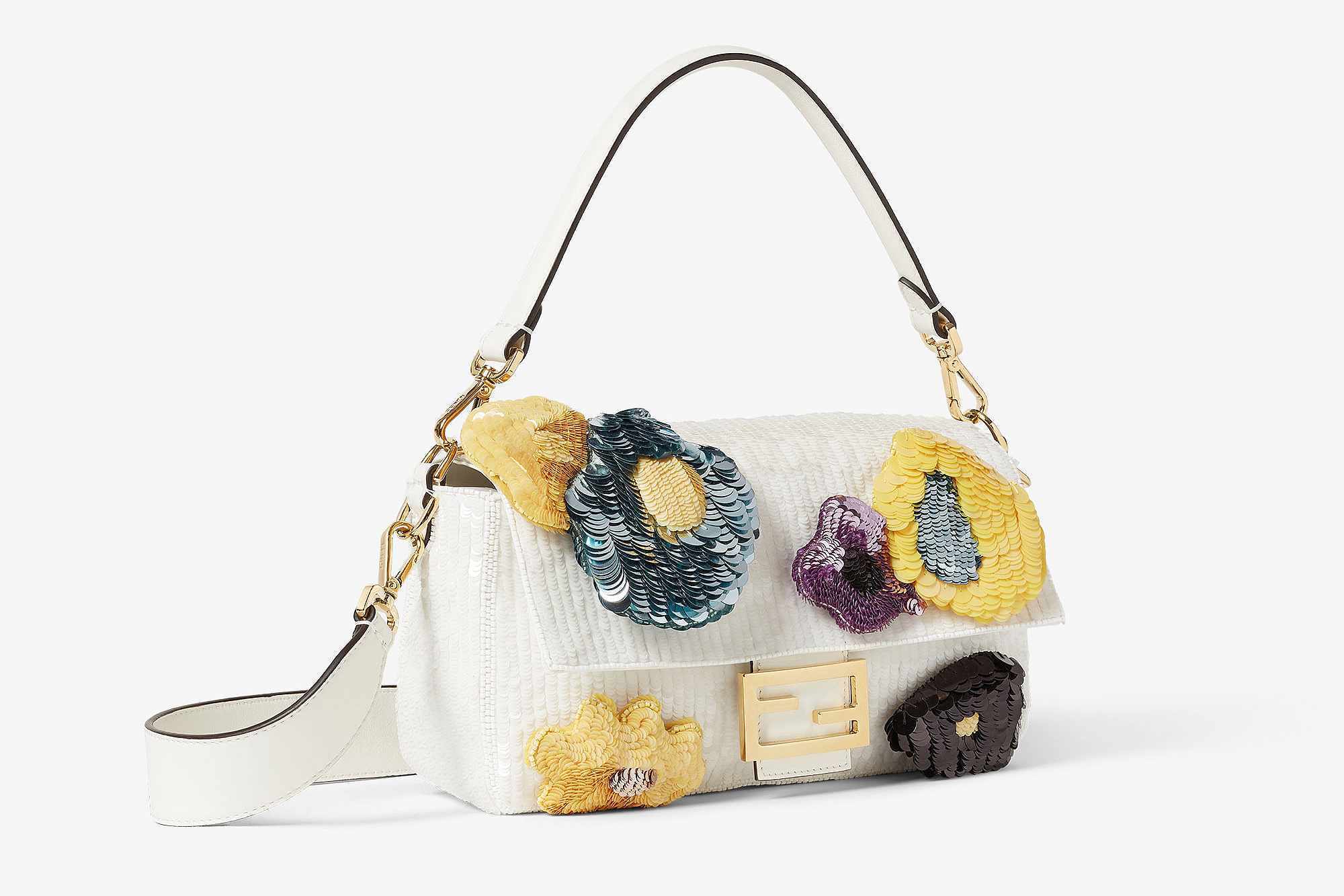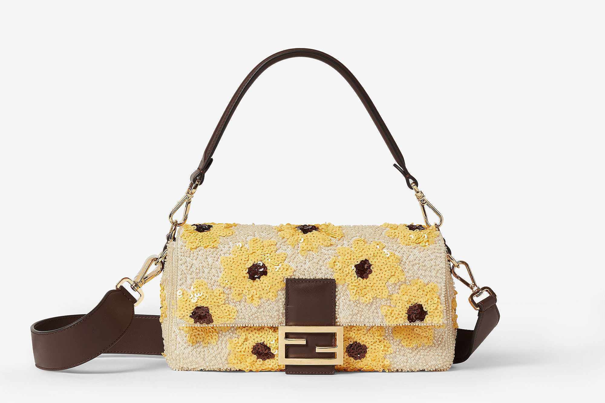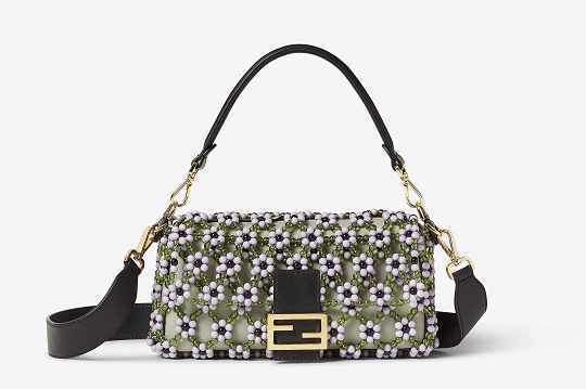 新款 Mamma Baguette 和 Iconic Baguette 手袋通体手工刺绣立体珠饰和亮片,呈现花团锦簇的 Sunny Side Flowers 花卉图案,缤纷花卉元素让包包绽现盎然春意。