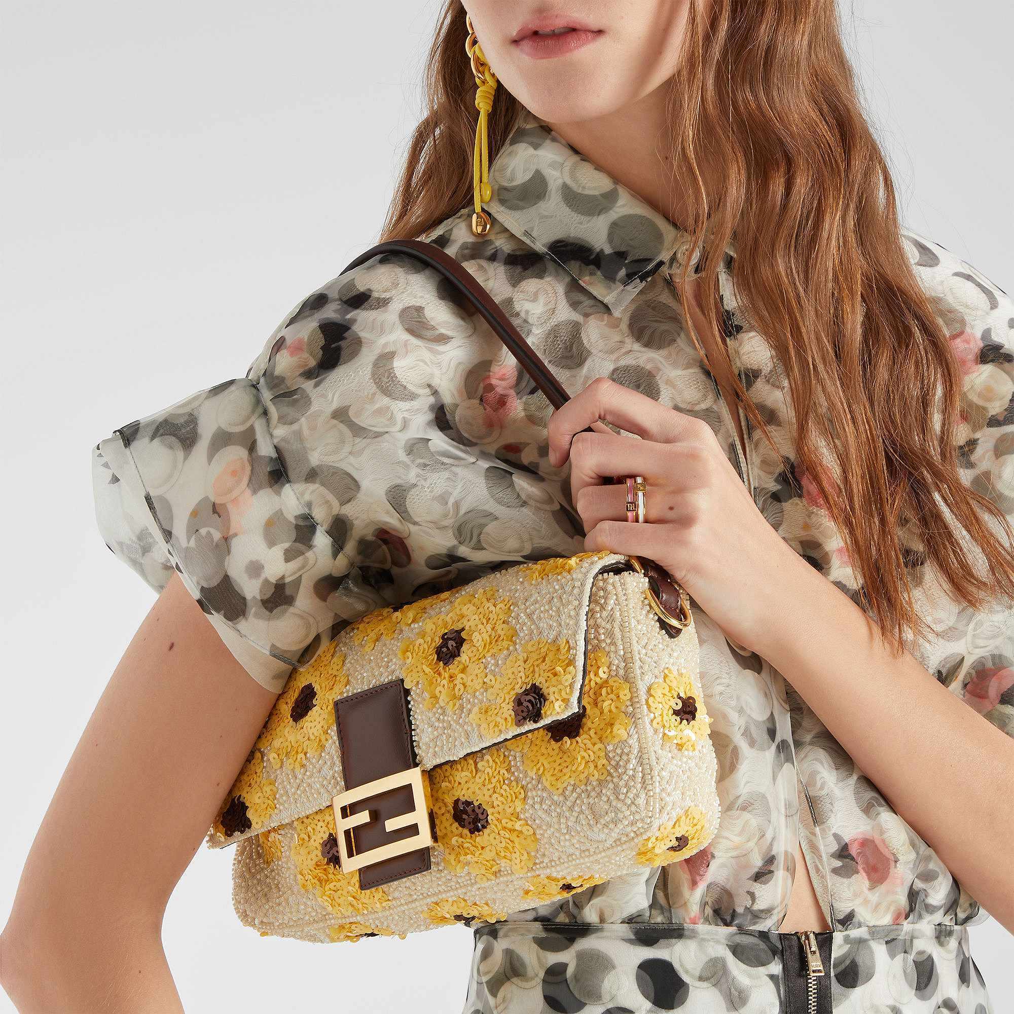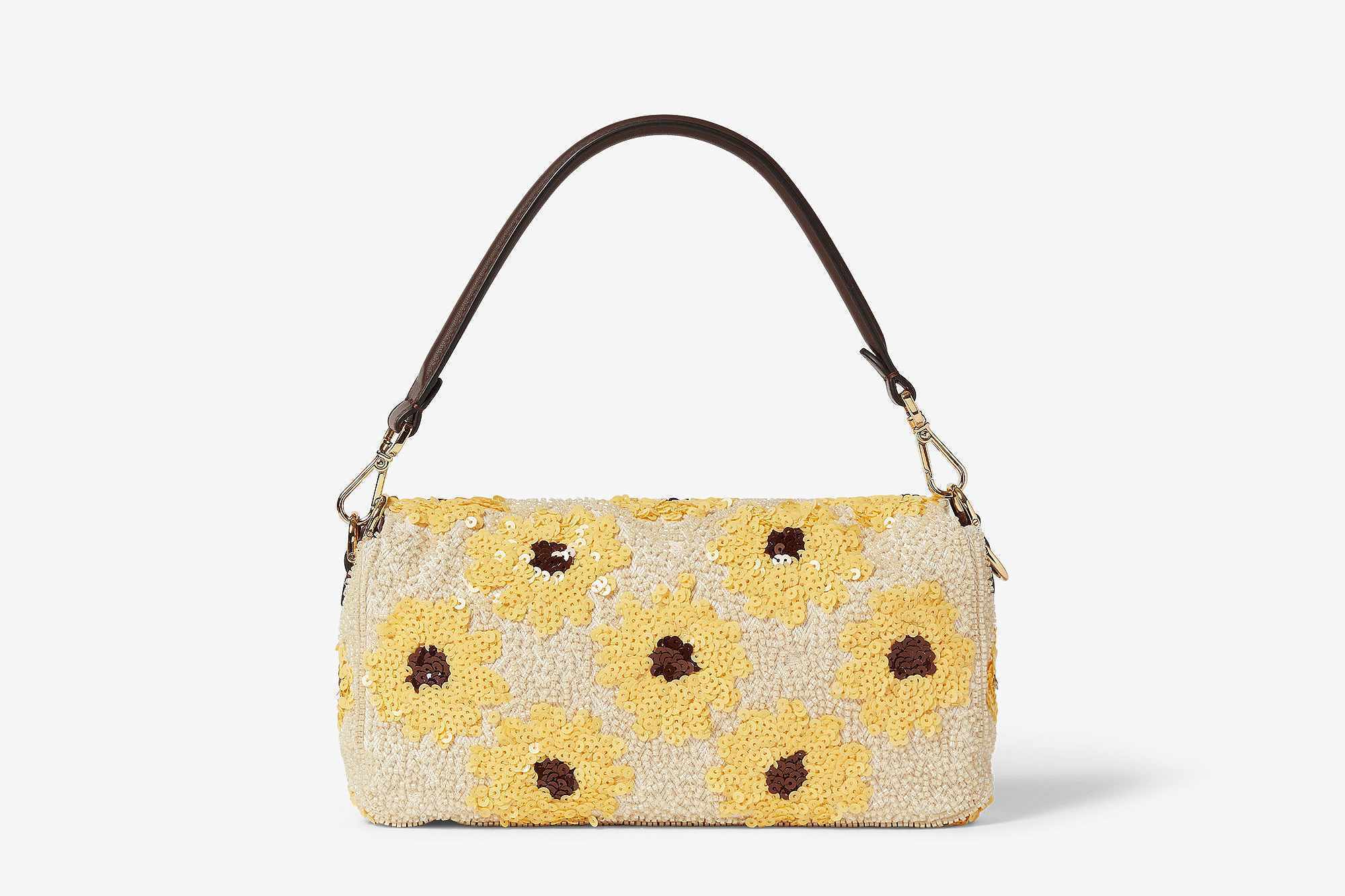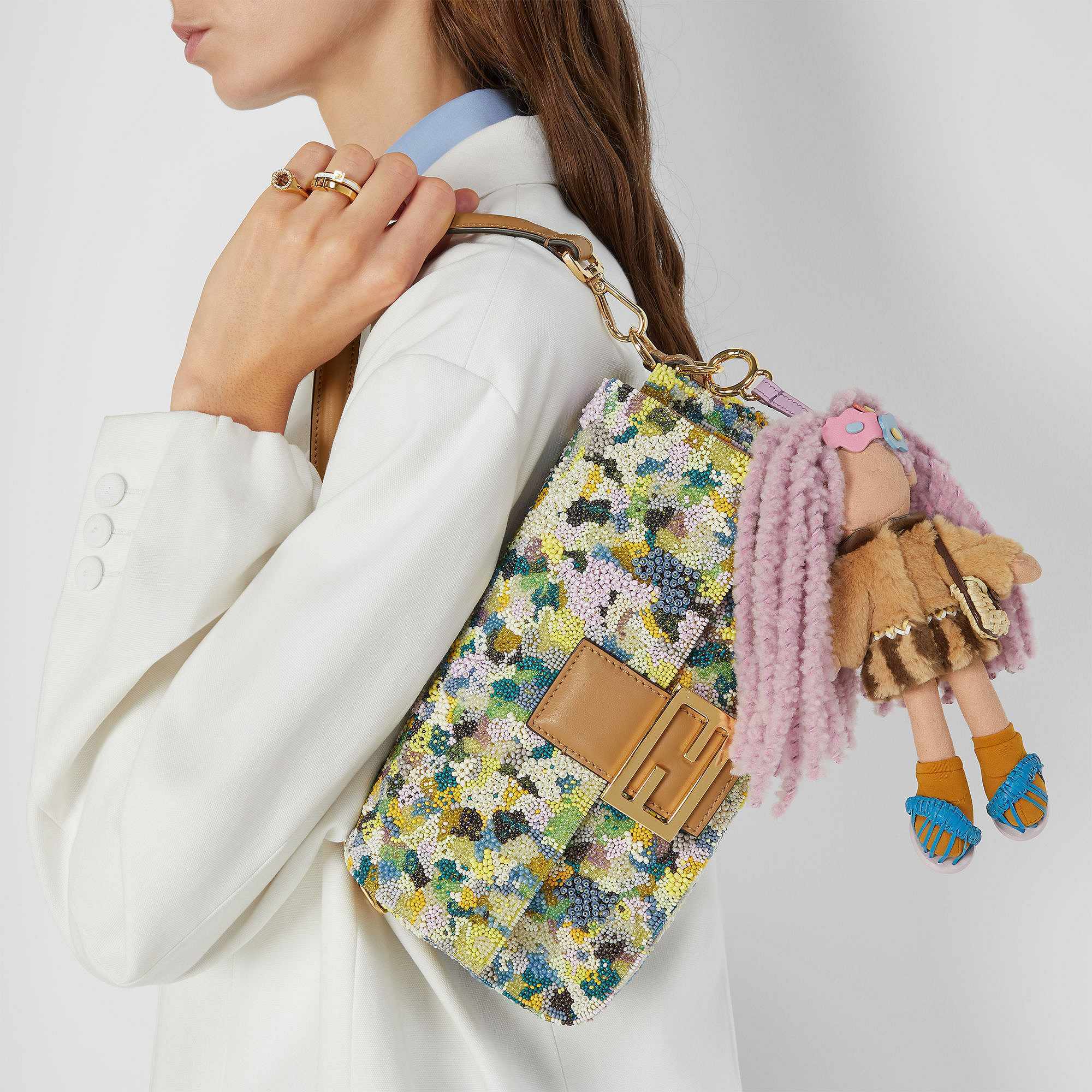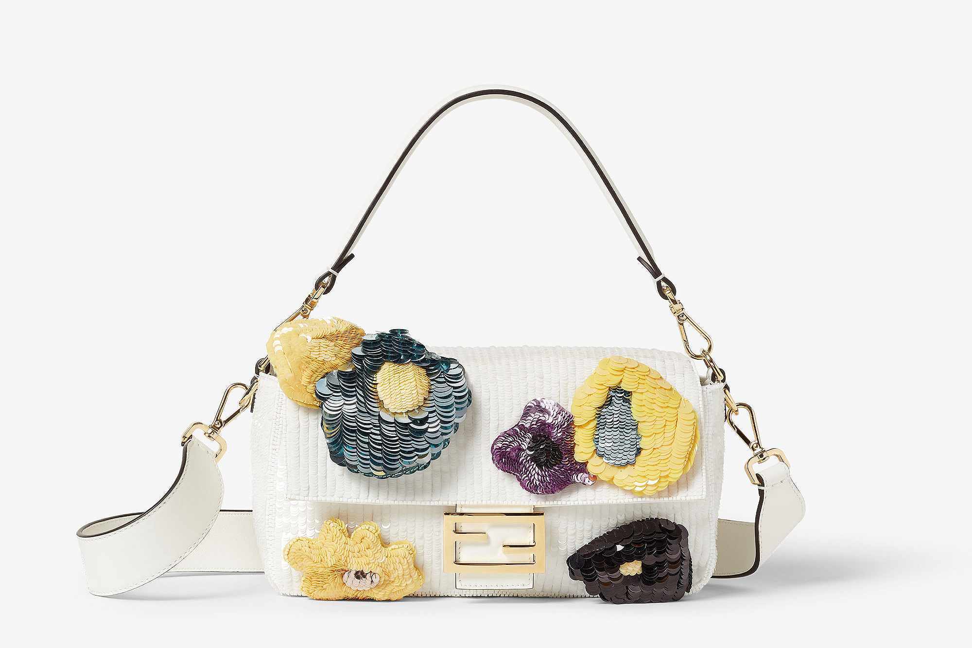 新款 Mamma Baguette 和 Iconic Baguette 手袋通体手工刺绣立体珠饰和亮片,呈现花团锦簇的 Sunny Side Flowers 花卉图案,缤纷花卉元素让包包绽现盎然春意。