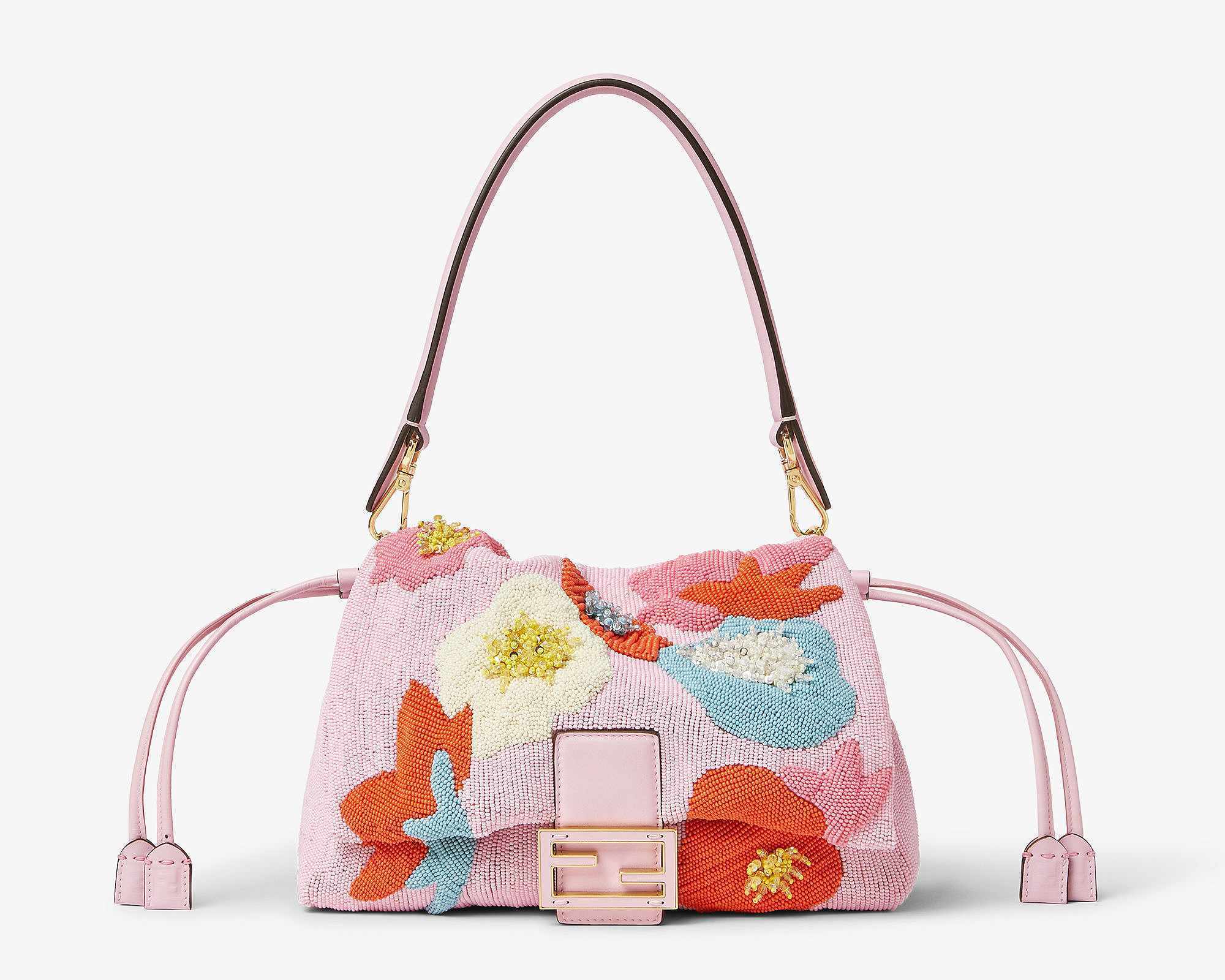 FENDI 刚刚上架2026春夏女士系列,本季作品以「未来盛夏」(Future Summer)为主题,通过串珠、亮片、刺绣、编织等工艺在包包上呈现镂空或立体花卉图腾,并渲染日光黄、青绿、天蓝、珊瑚粉等缤纷糖果色调,活力迈入盎然春夏。