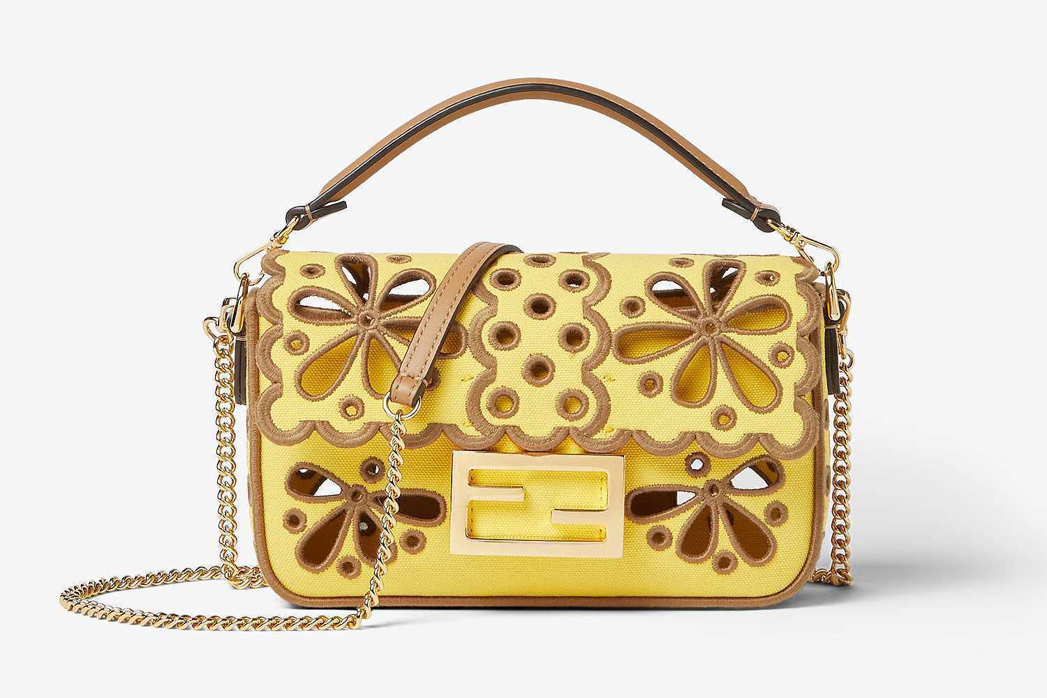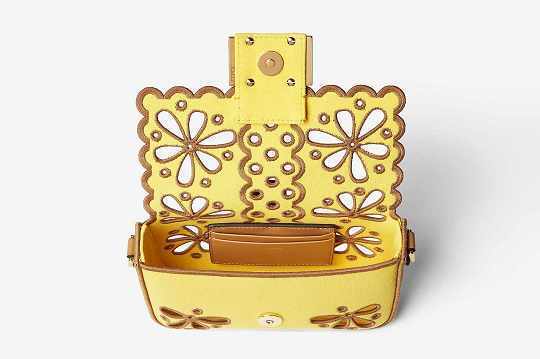 Baguette 迷你链条包和吊饰包、Peekaboo Iconic 小号手袋通过皮革镂孔和刺绣工艺在包身呈现镂空花卉刺绣图案,为包包注入浪漫田园气息和轻盈呼吸感。