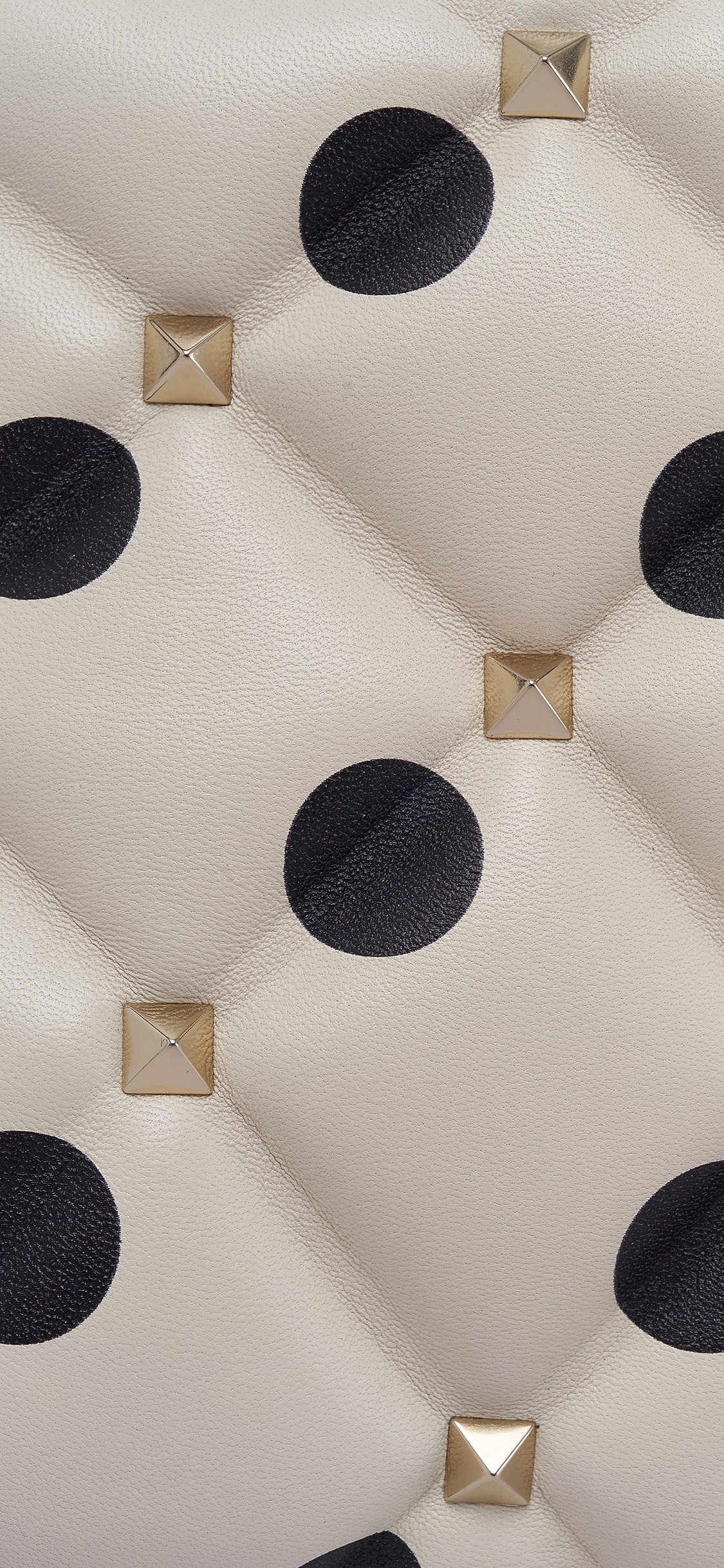 波点(Polka-dot)图案在近几年重新成为时尚圈热门元素,这款包袋使用的是最百搭的白底黑点印花,铆钉装饰在复古甜美中融入一丝摇滚气质,无论裙装或裤装都能完美驾驭。