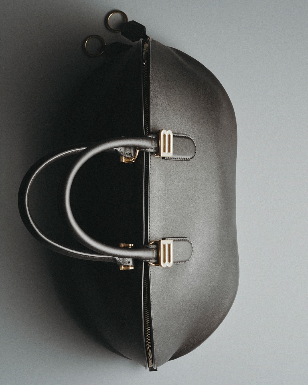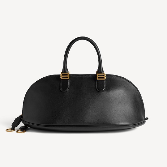 Bolero 手袋是 Balenciaga 新任创意总监 Pierpaolo Piccioli 为品牌设计的首款手袋,灵感源自创始人1937年推出的 Bolero 斗牛士夹克。包包采用光滑小牛皮材质搭配纳帕羊皮革衬里,圆润立体的保龄球包型与拱形皮革手柄营造出优雅干练气质。拉链沿中缝环绕整个包身,让包包可以像牡蛎一样开合,B形金属徽饰为洗练包型点睛。推出中号和迷你2个尺寸,配有可拆卸肩带。中号官价3,950美元