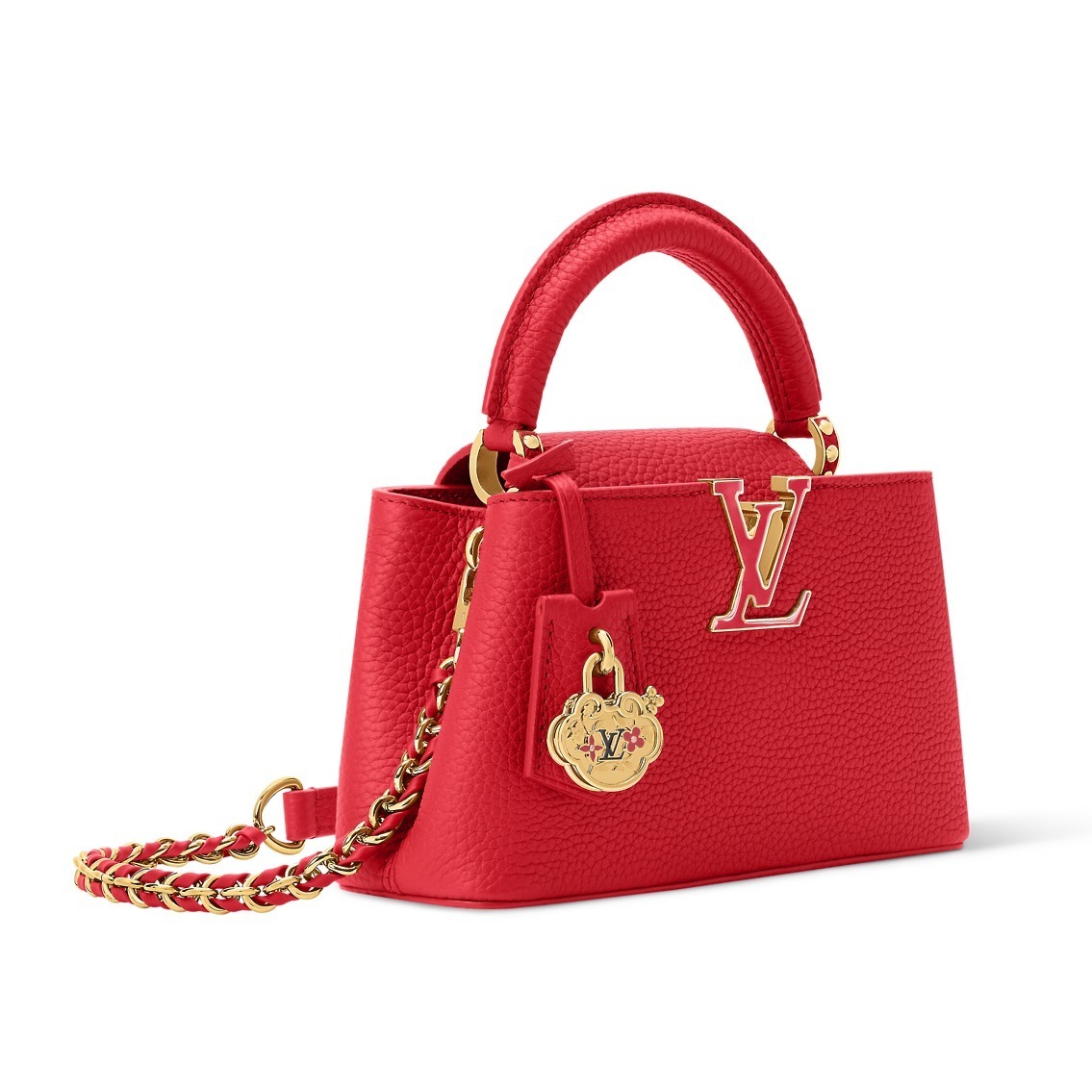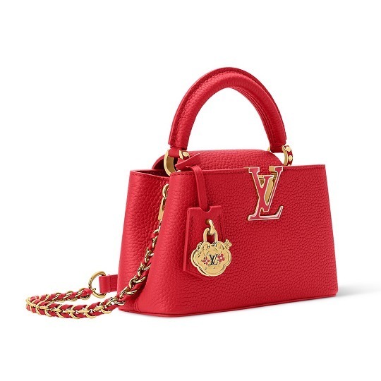Louis Vuitton 本周发布中国新春限定款手袋,Capucines 迷你手袋和 Side Trunk 小号手袋渲染喜气洋洋的正红色调,并融入中国传统如意锁元素和品牌标志性 Monogram 花卉细节,春节来临前入手一只开运「红包」,为穿搭增添高光又能讨个好彩头。