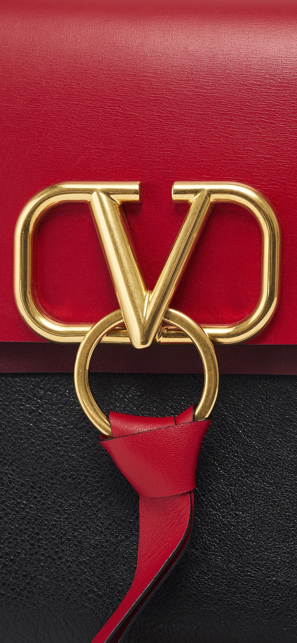 复刻重现的 V Logo 搭扣是这只包包上最醒目的装饰,以做旧黄铜材质打造,缀以 Valentino 红色皮革飘带,既是对品牌经典的致敬,又不乏文艺浪漫情愫。