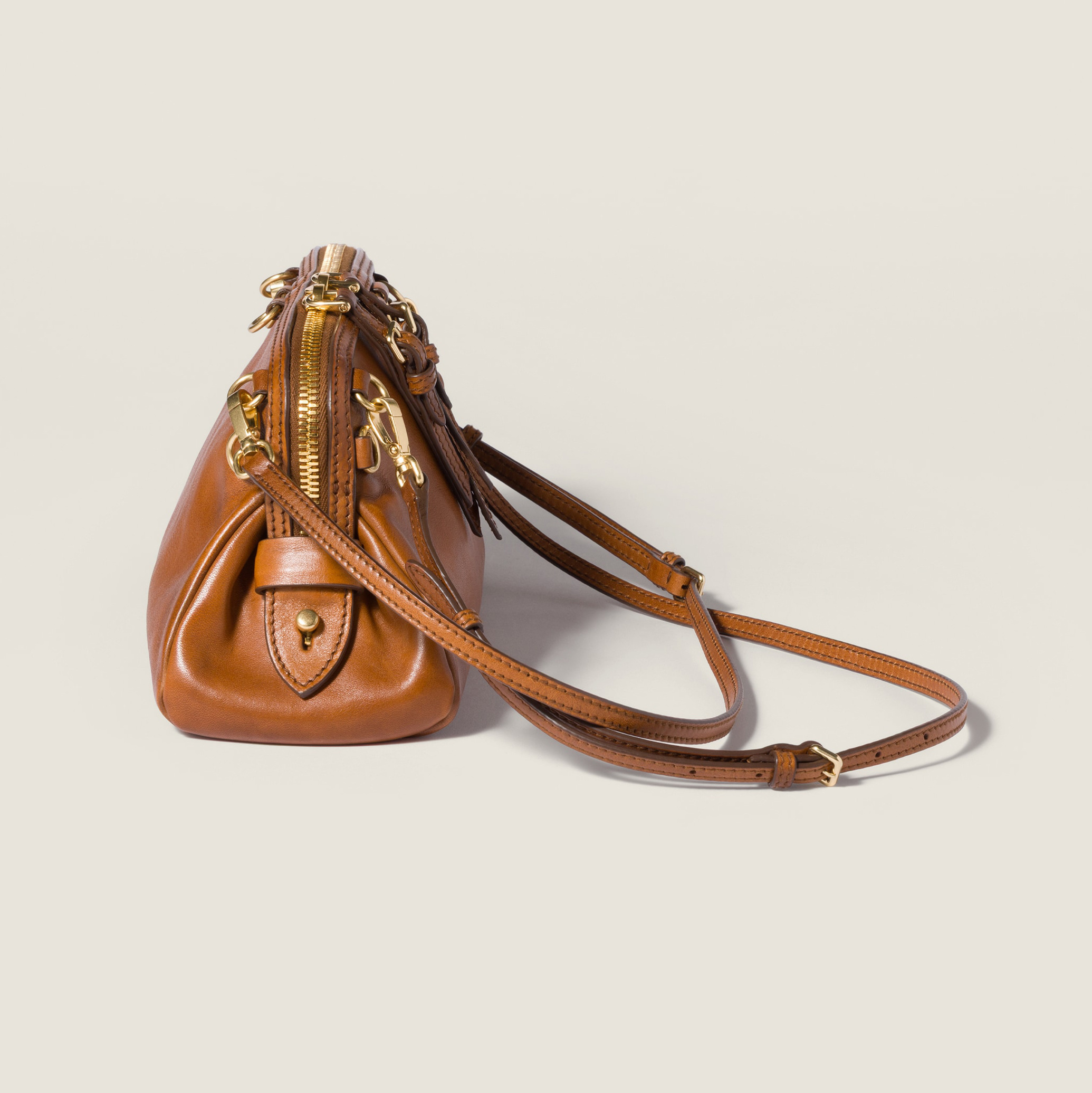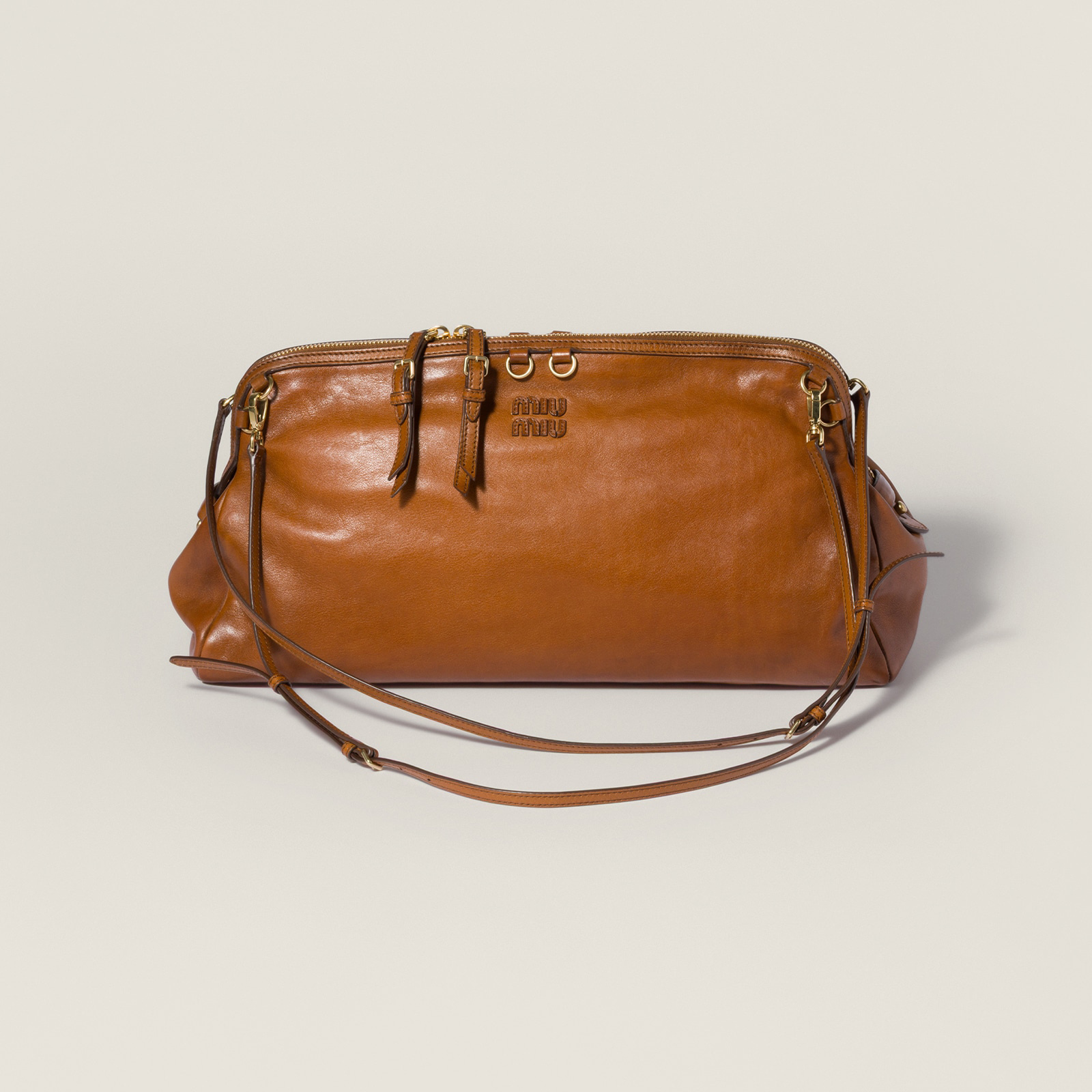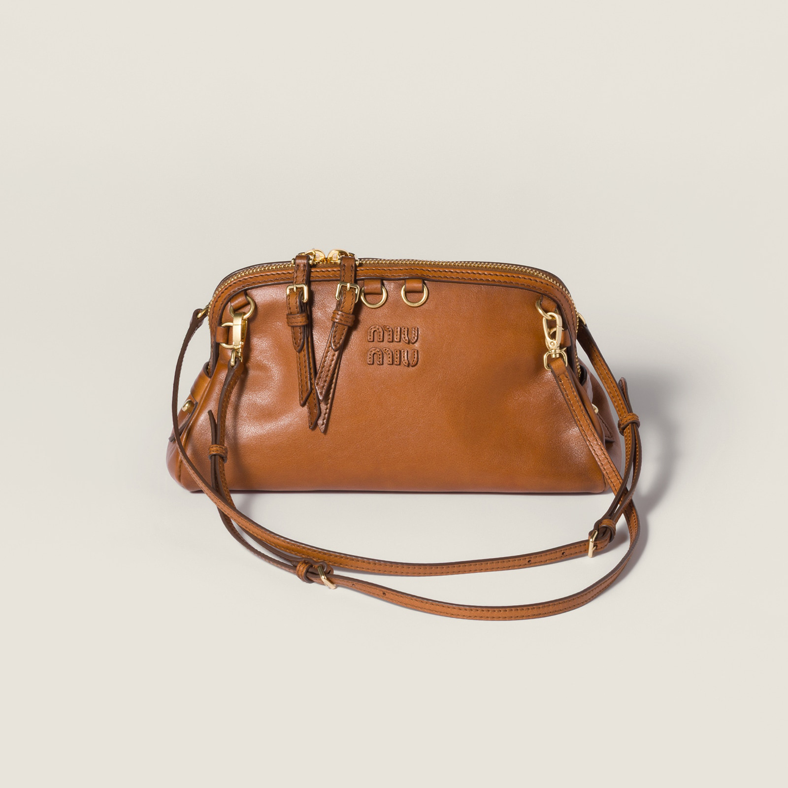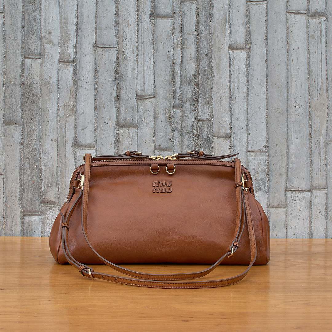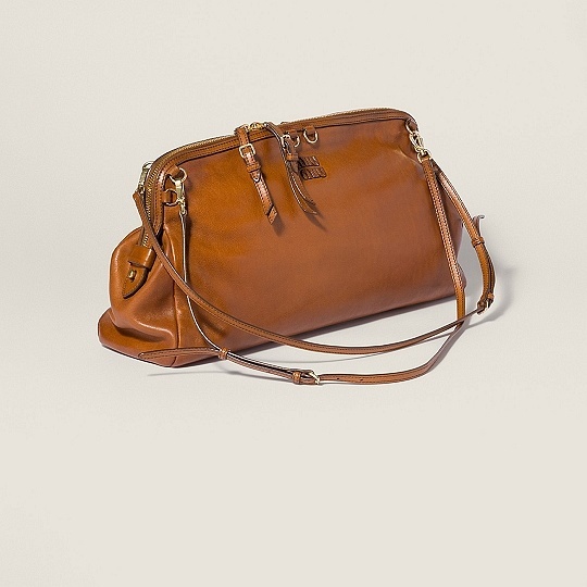 Caprice 手袋推出干邑色仿旧皮革版本,包包采用优雅的手包廓形搭配顶部双向拉链开合,颇有复古学院气息。推出小号和大号2种尺寸,可拆卸可调节肩带实现手拎、肩背等多种造型方式,还可以把两根肩带连接起来作为斜挎包佩戴,或者双肩背携解放双手。