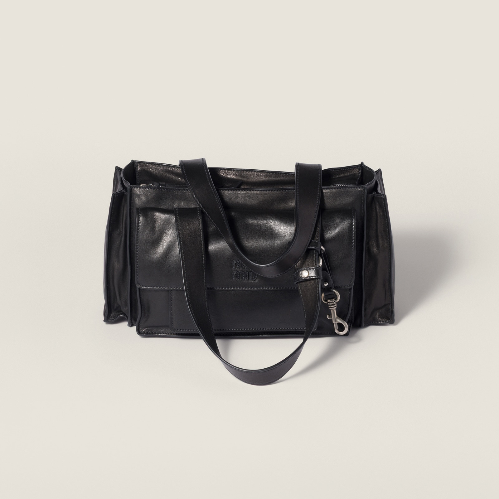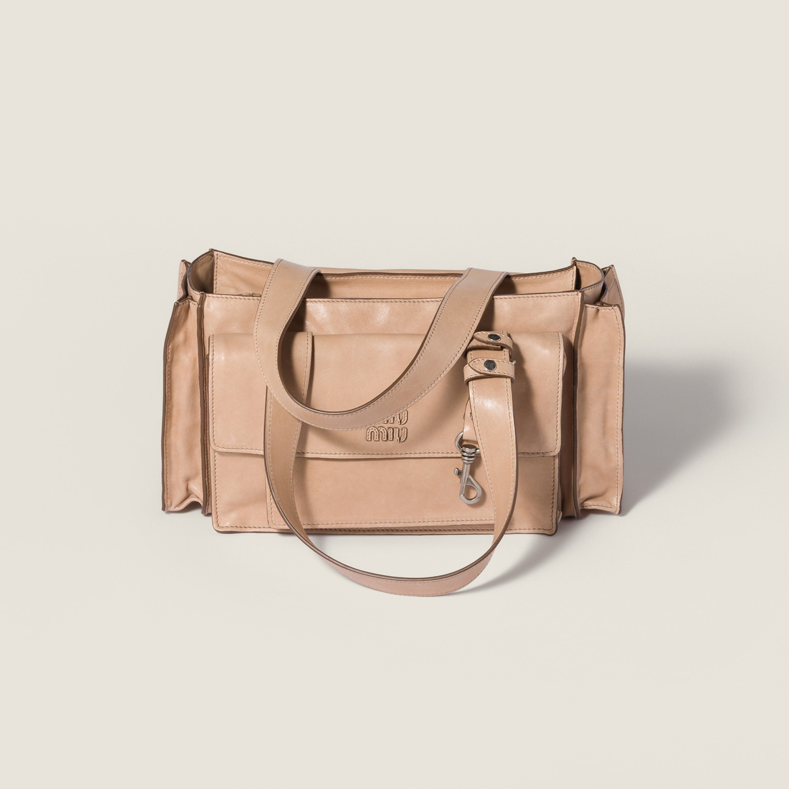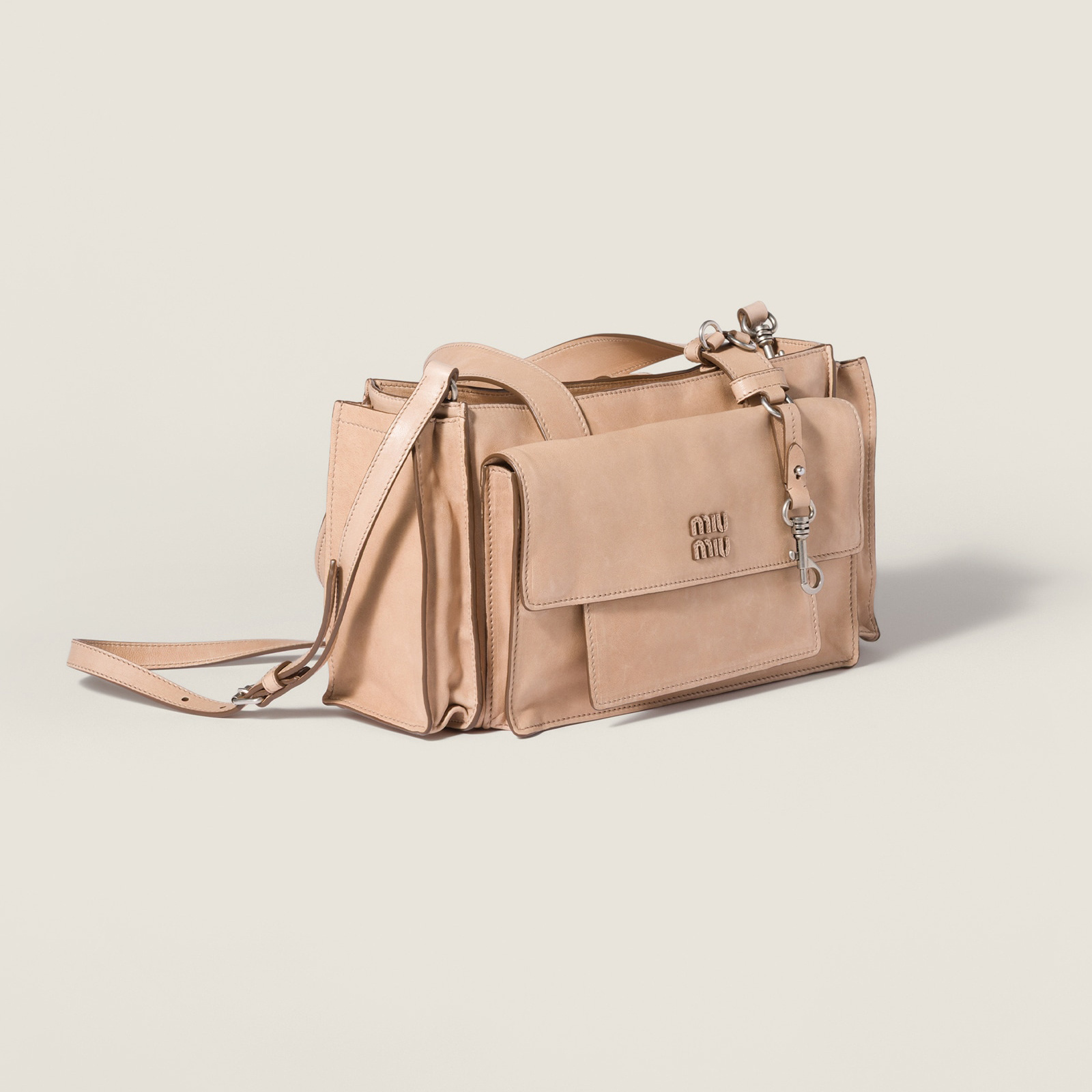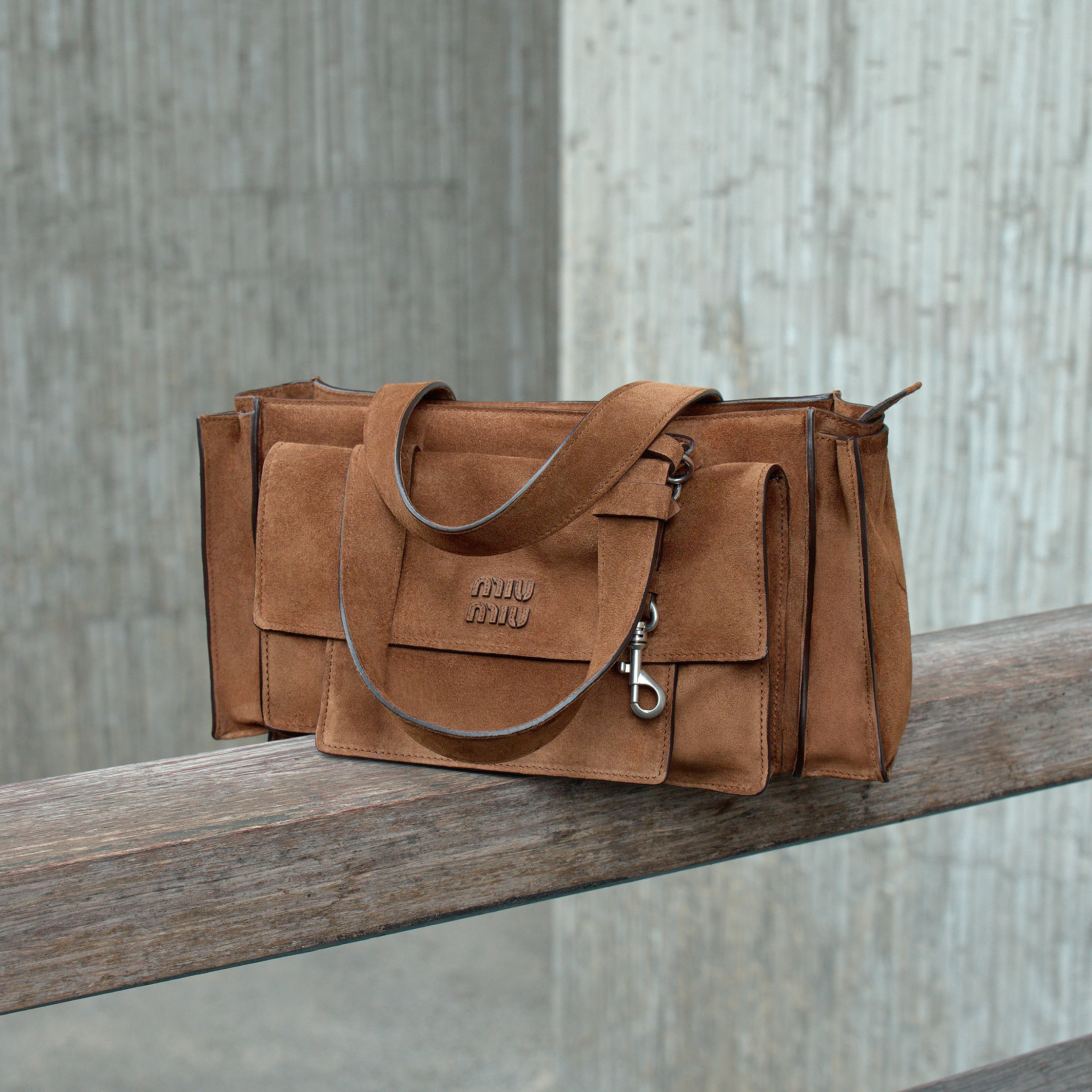 2026春夏新款 Utilitaire 系列推出手提包、肩背包、斜挎包等多种包型,搭配焦糖色系绒面牛皮革或者仿旧效果纳帕皮革制作而成,硬朗廓形与工装口袋的设计为包包注入帅气中性格调。