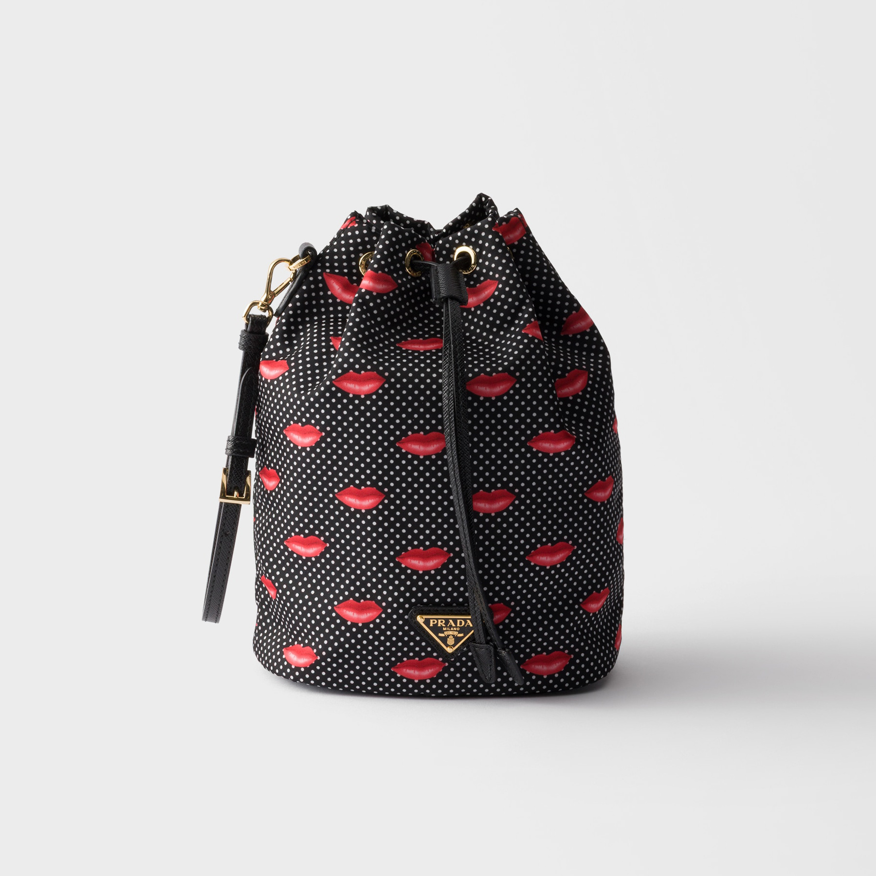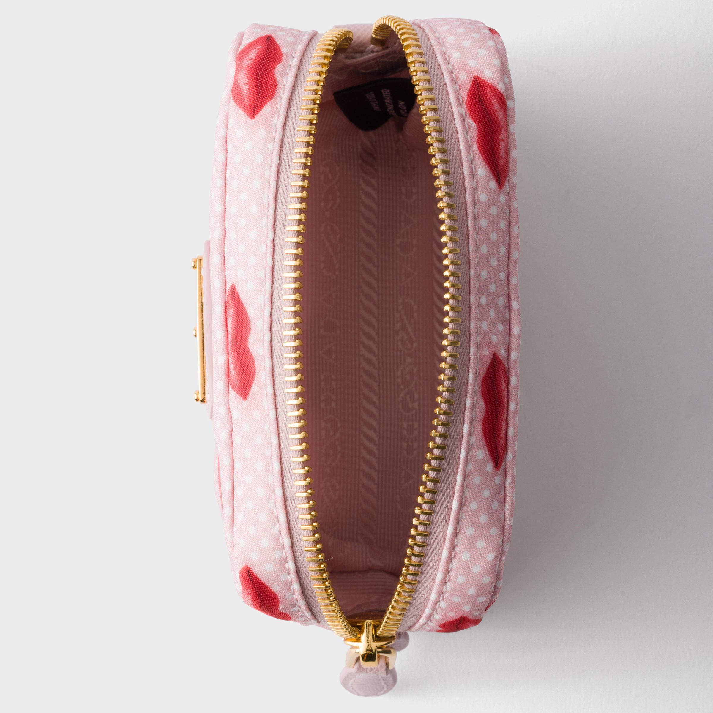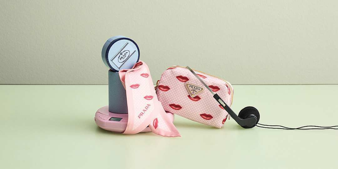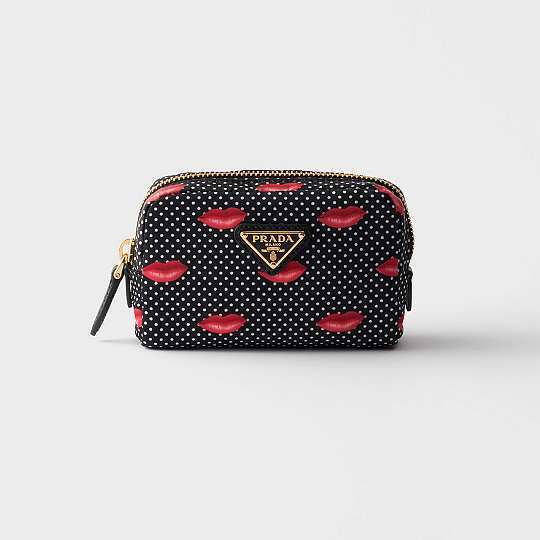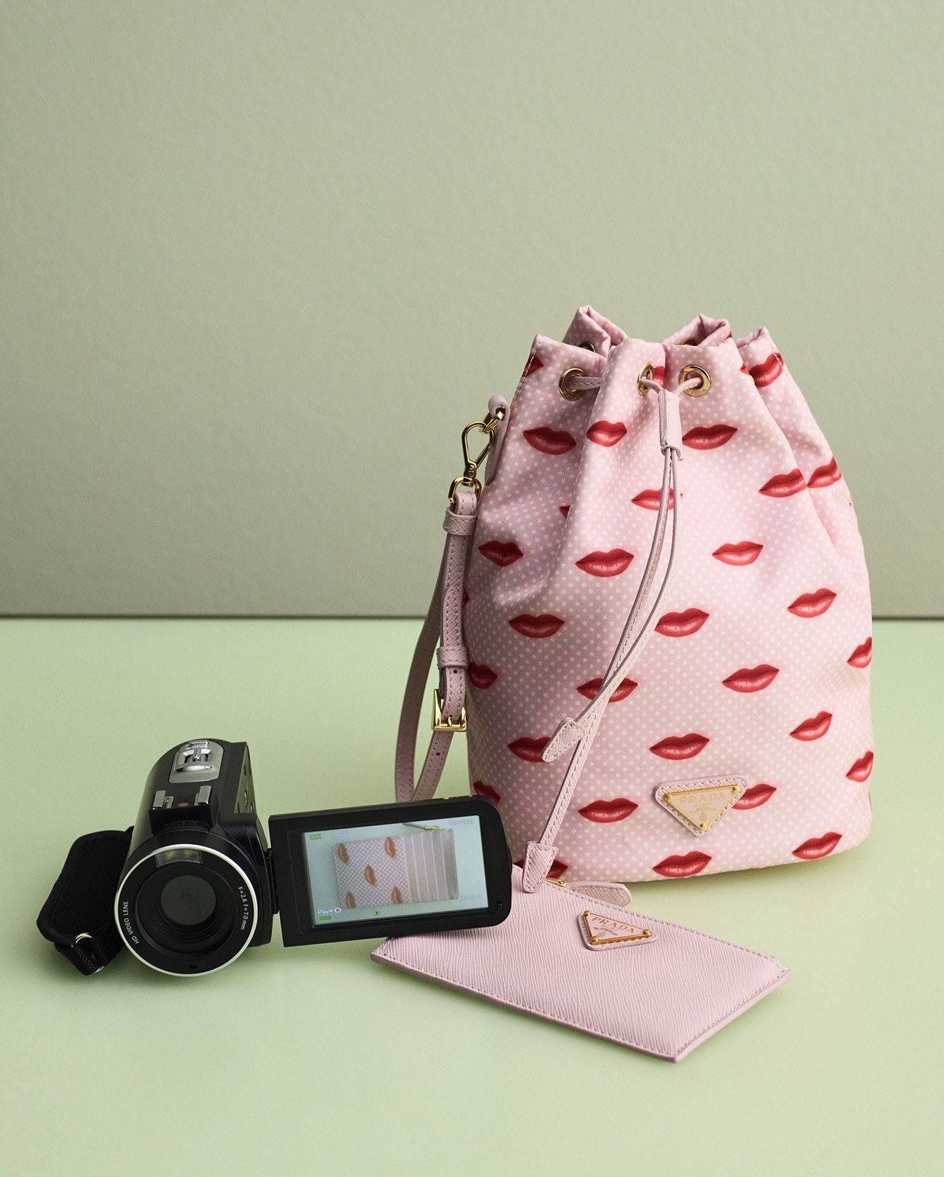 Prada Lips 红唇印花诞生于千禧年之交的2000春夏系列,创意总监 Miuccia Prada 将具有女性化色彩的嘴唇图案平铺排列于上衣和裙摆之上,营造出如同AI生成图一样的超现实主义风格,成为品牌最具记忆点的印花图案之一。本次情节人甄选系列将红唇印花与波点背景结合,运用在 Re-Nylon 再生尼龙抽绳小袋、化妆包、Saffiano 皮革卡包和窄版丝巾之上,热情魅惑的红唇与浪漫的情人节氛围颇为契合。