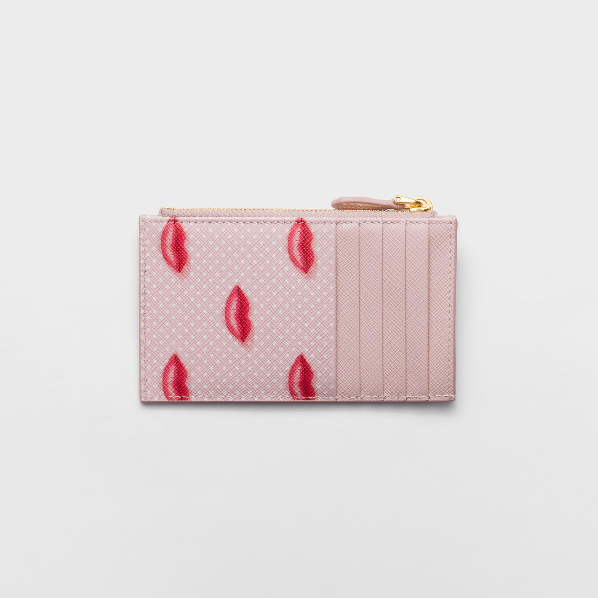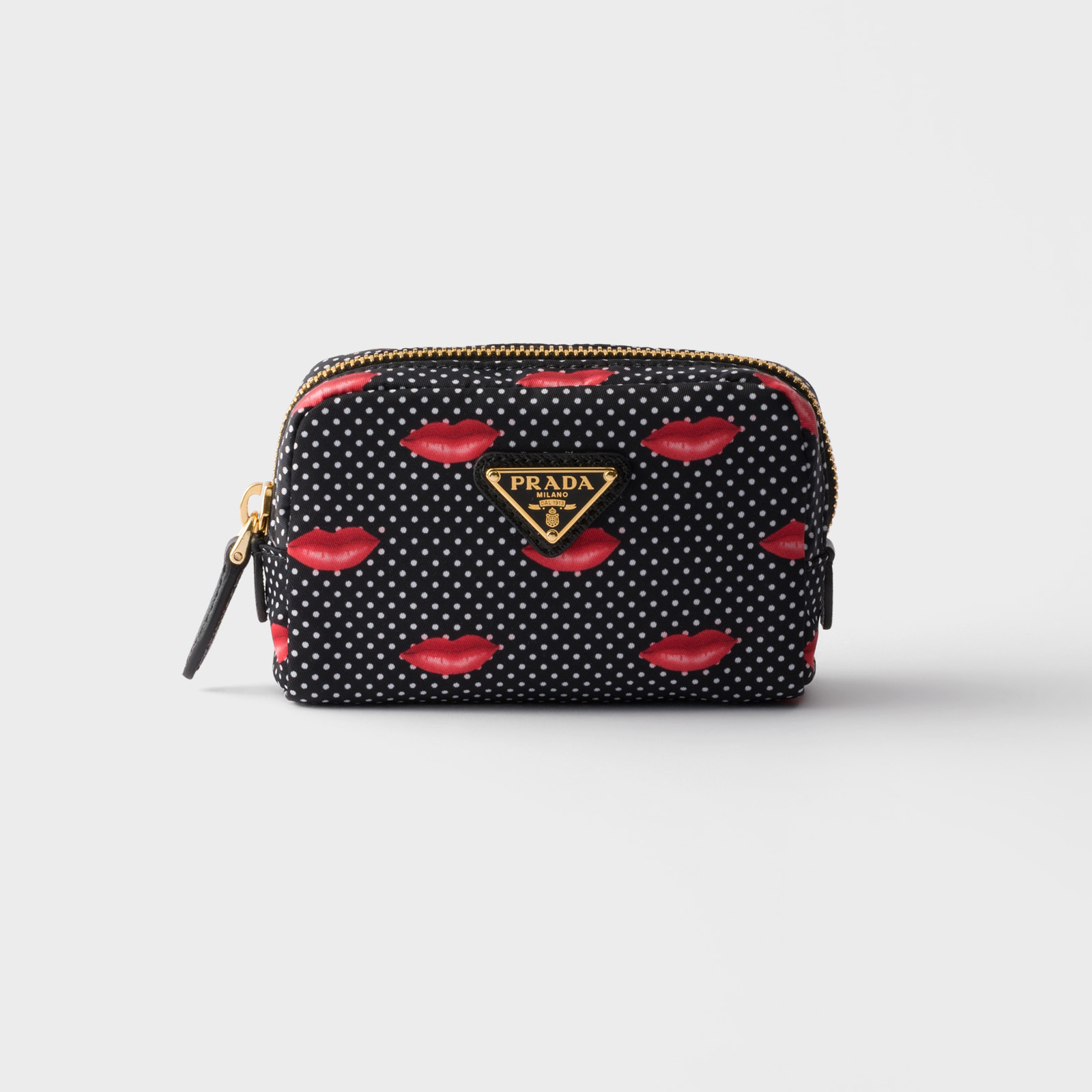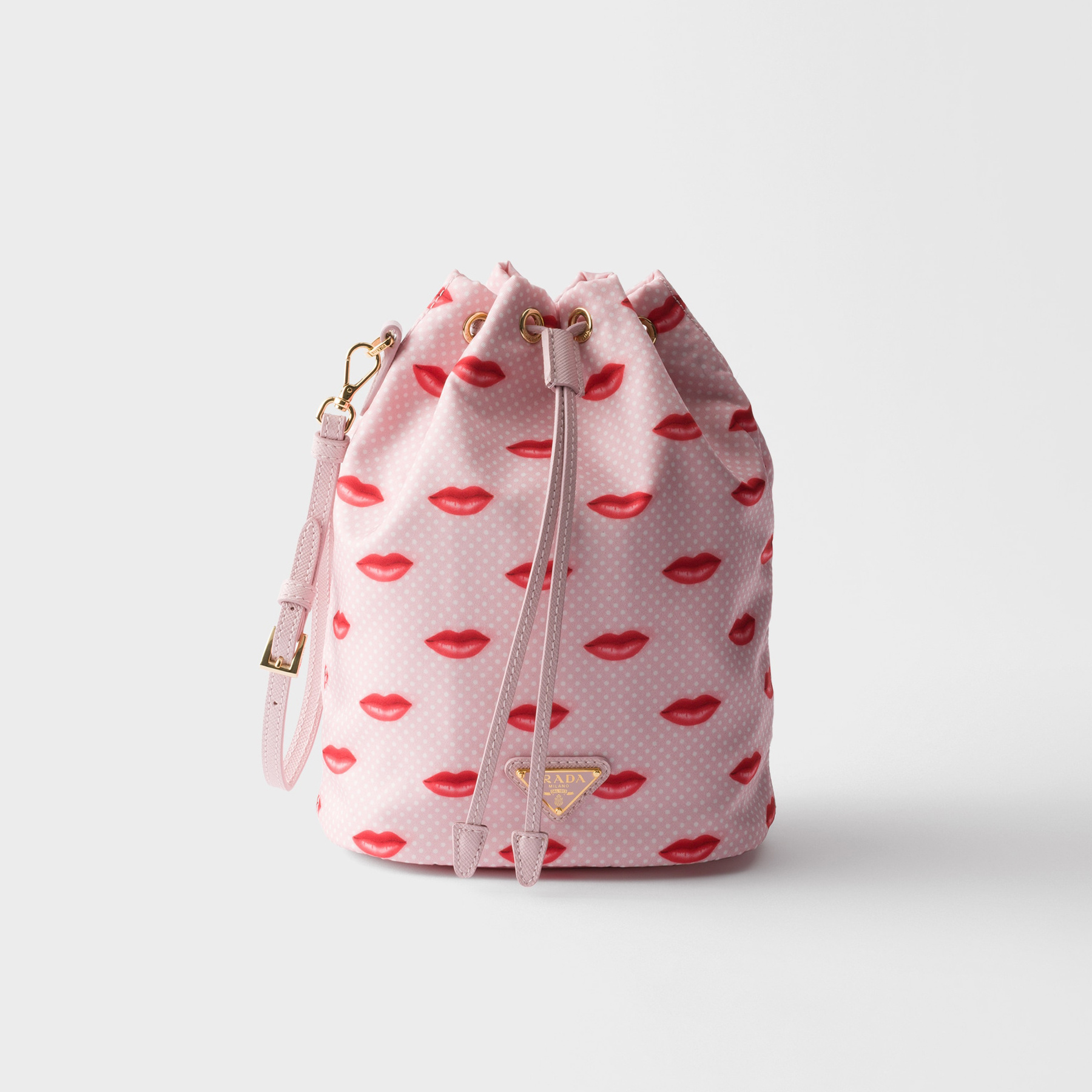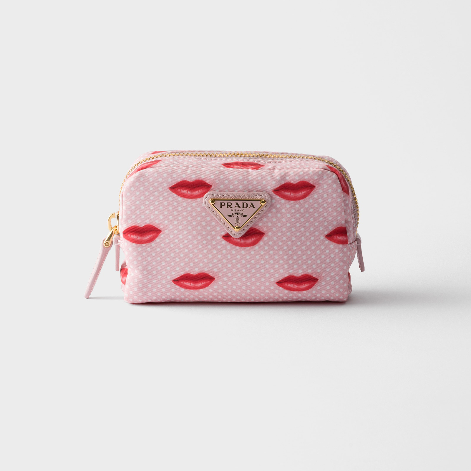 Prada Lips 红唇印花诞生于千禧年之交的2000春夏系列,创意总监 Miuccia Prada 将具有女性化色彩的嘴唇图案平铺排列于上衣和裙摆之上,营造出如同AI生成图一样的超现实主义风格,成为品牌最具记忆点的印花图案之一。本次情节人甄选系列将红唇印花与波点背景结合,运用在 Re-Nylon 再生尼龙抽绳小袋、化妆包、Saffiano 皮革卡包和窄版丝巾之上,热情魅惑的红唇与浪漫的情人节氛围颇为契合。