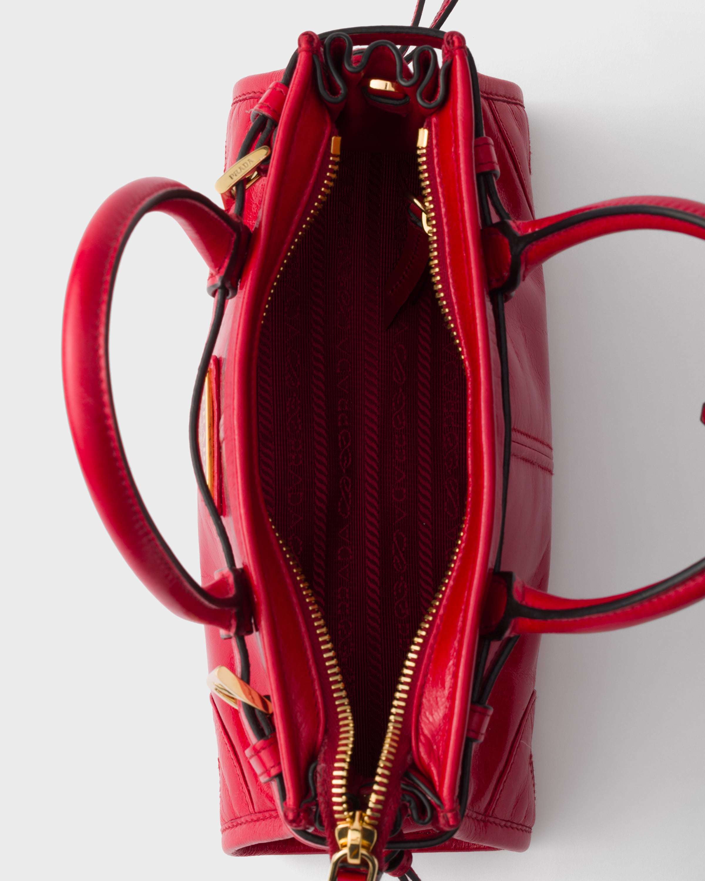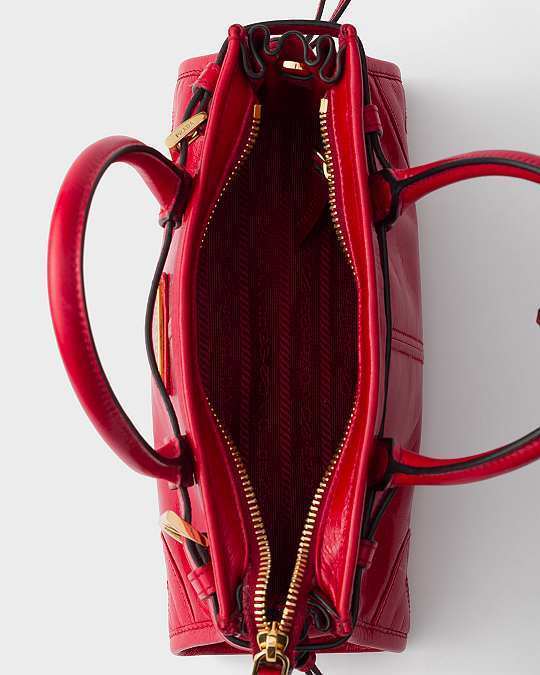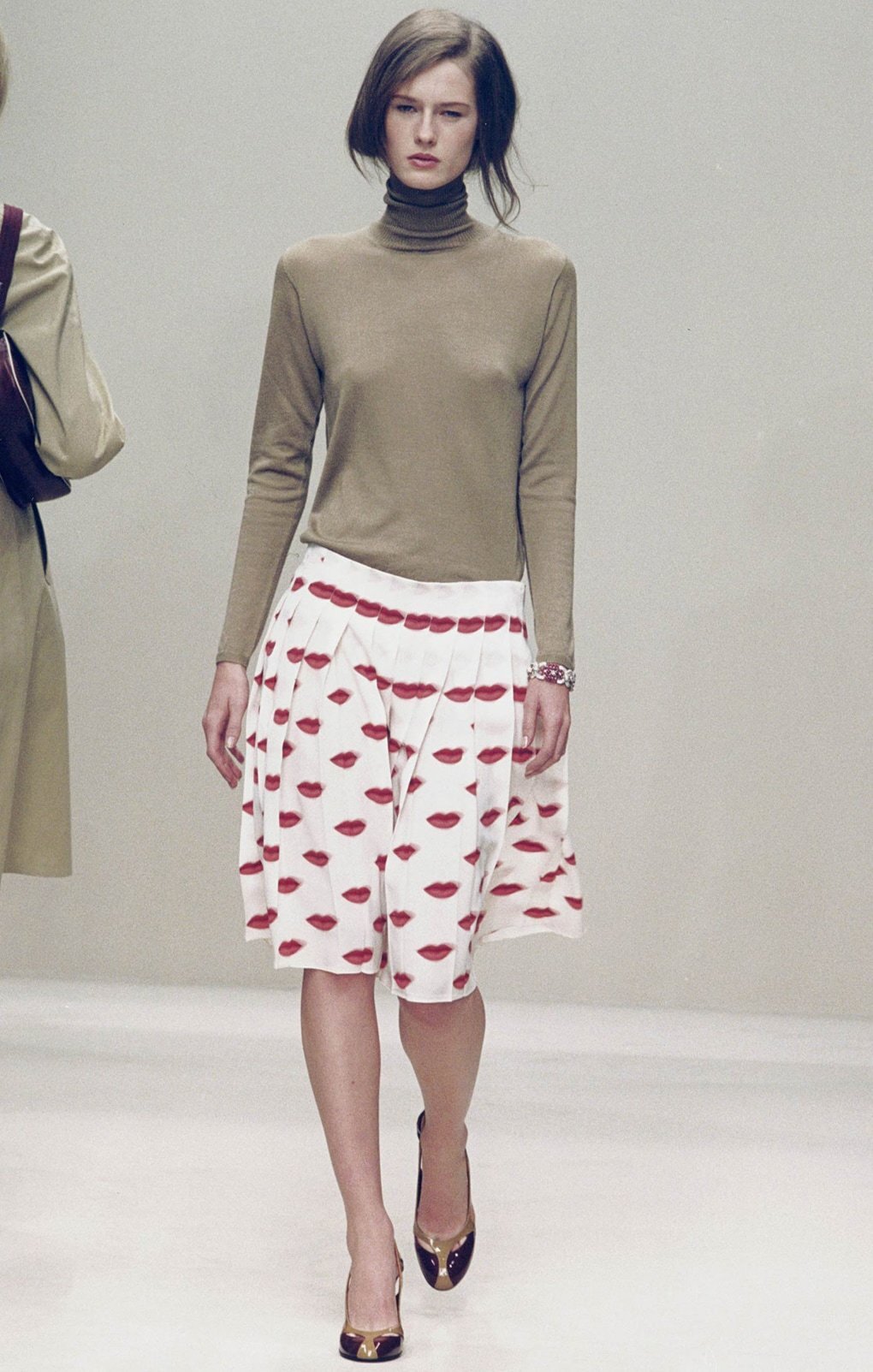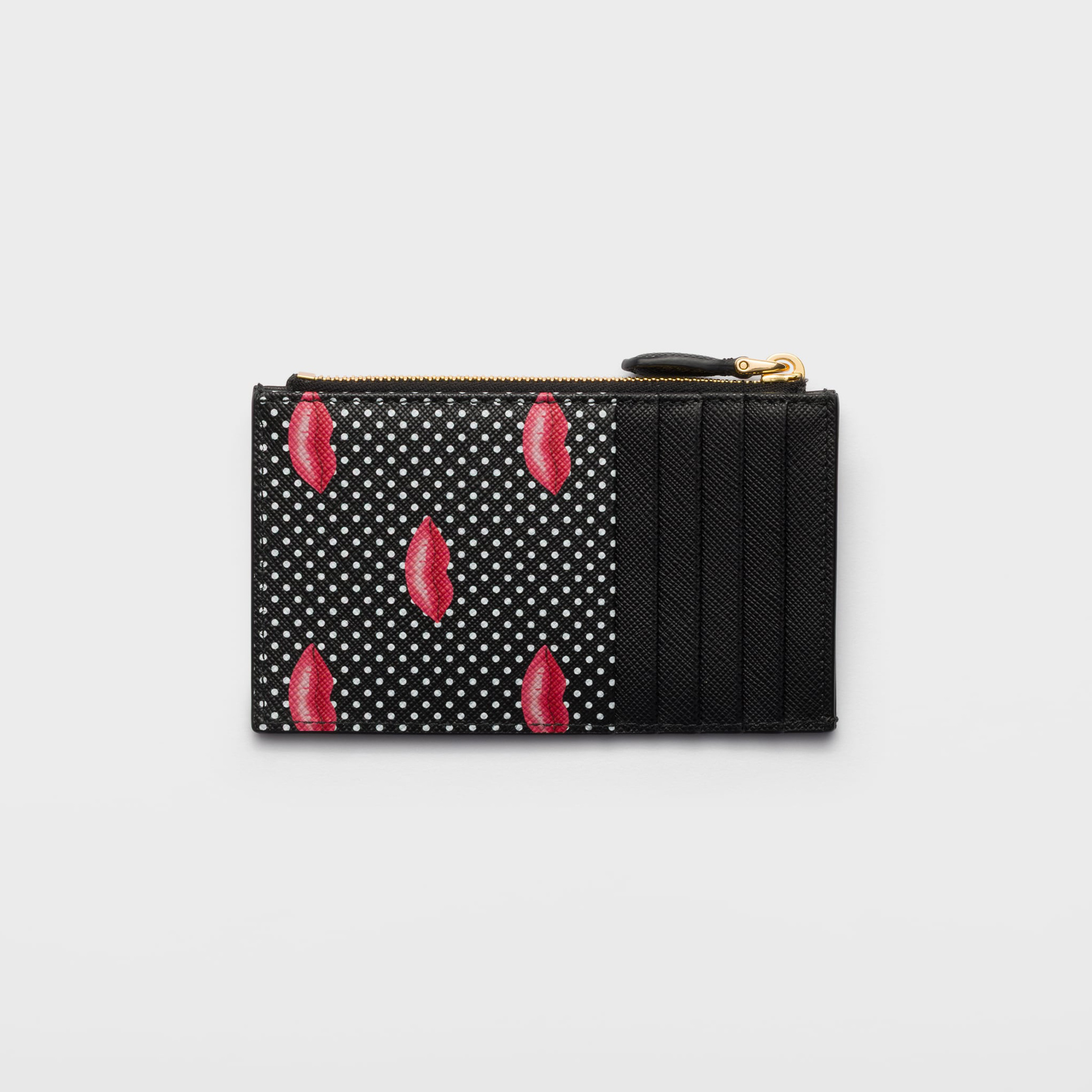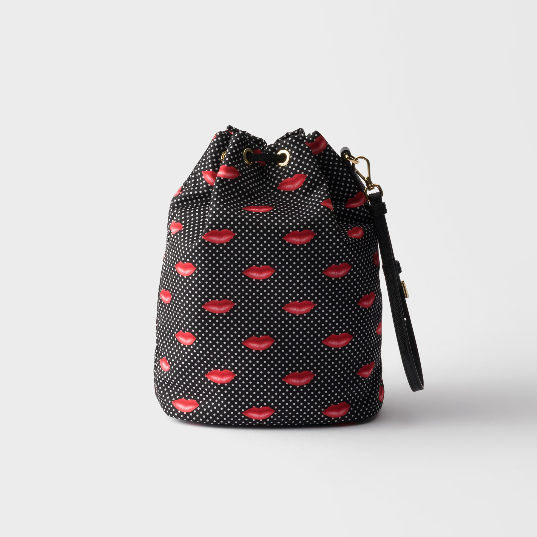 Prada Lips 红唇印花诞生于千禧年之交的2000春夏系列,创意总监 Miuccia Prada 将具有女性化色彩的嘴唇图案平铺排列于上衣和裙摆之上,营造出如同AI生成图一样的超现实主义风格,成为品牌最具记忆点的印花图案之一。本次情节人甄选系列将红唇印花与波点背景结合,运用在 Re-Nylon 再生尼龙抽绳小袋、化妆包、Saffiano 皮革卡包和窄版丝巾之上,热情魅惑的红唇与浪漫的情人节氛围颇为契合。