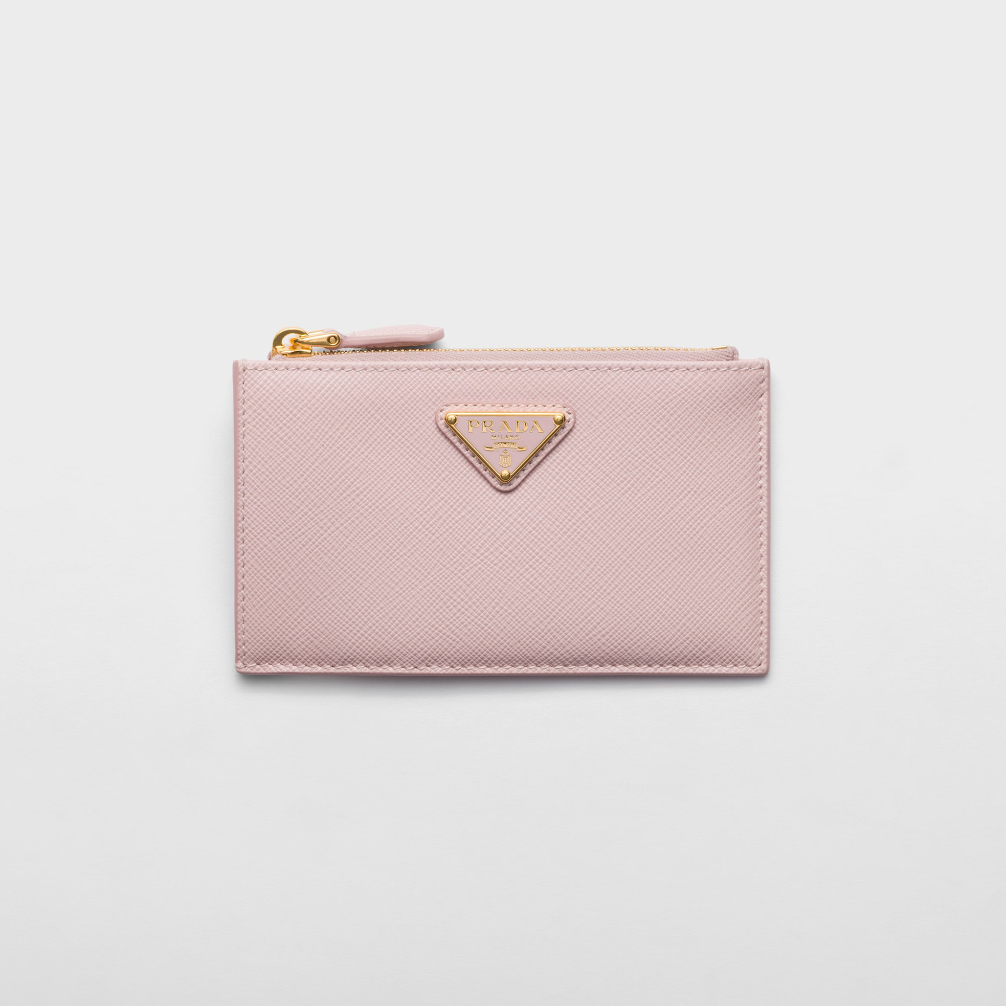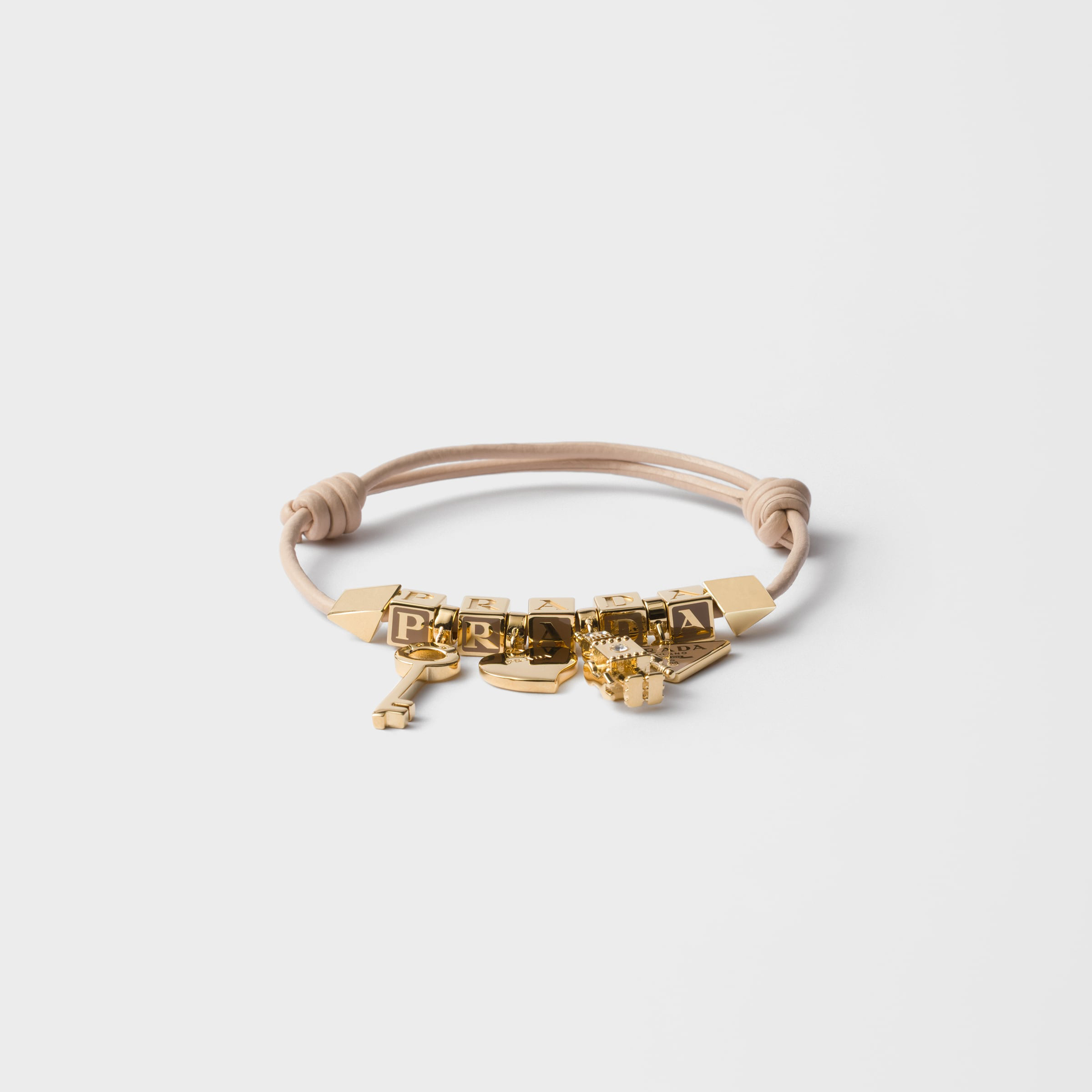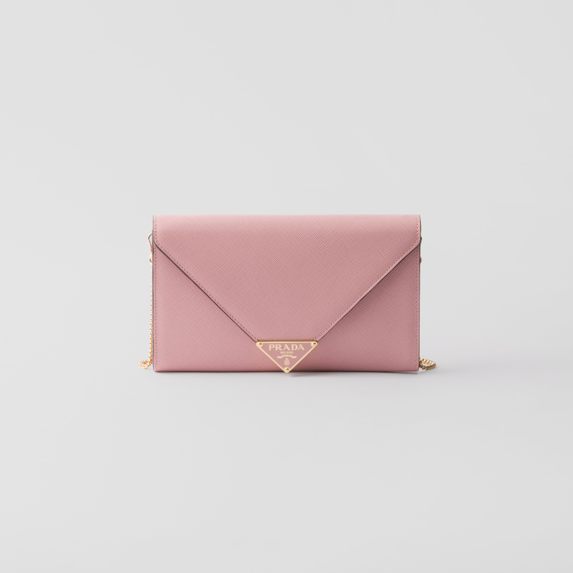 链带钱包、卡夹等小皮具采用粉色 Saffiano 十字纹皮革制作而成,点缀品牌标志性珐琅三角形徽标,温柔色调特别适合情人节约会。饰有爱心、钥匙和机器人吊坠的手环适合配成情侣单品作为告白礼物,大胆表达浪漫爱意。
