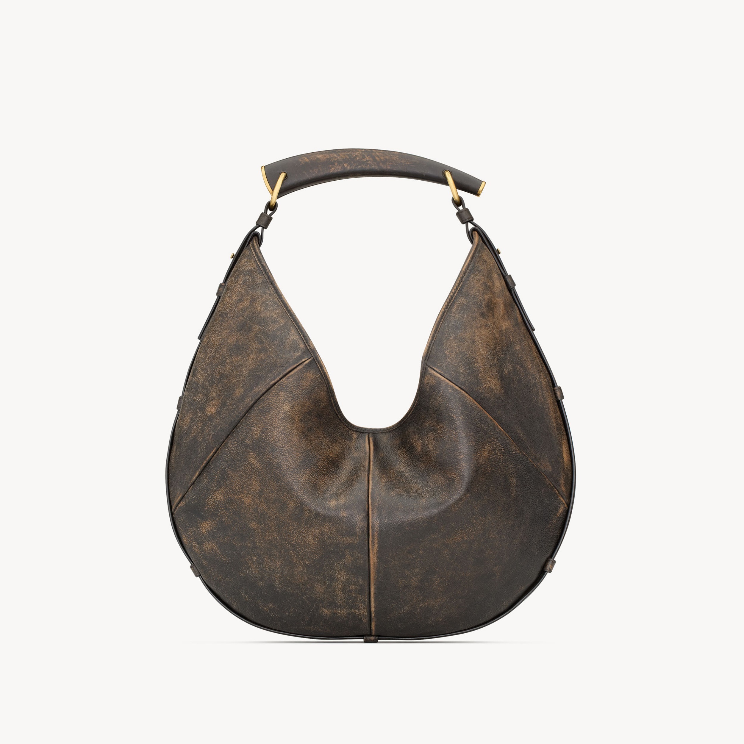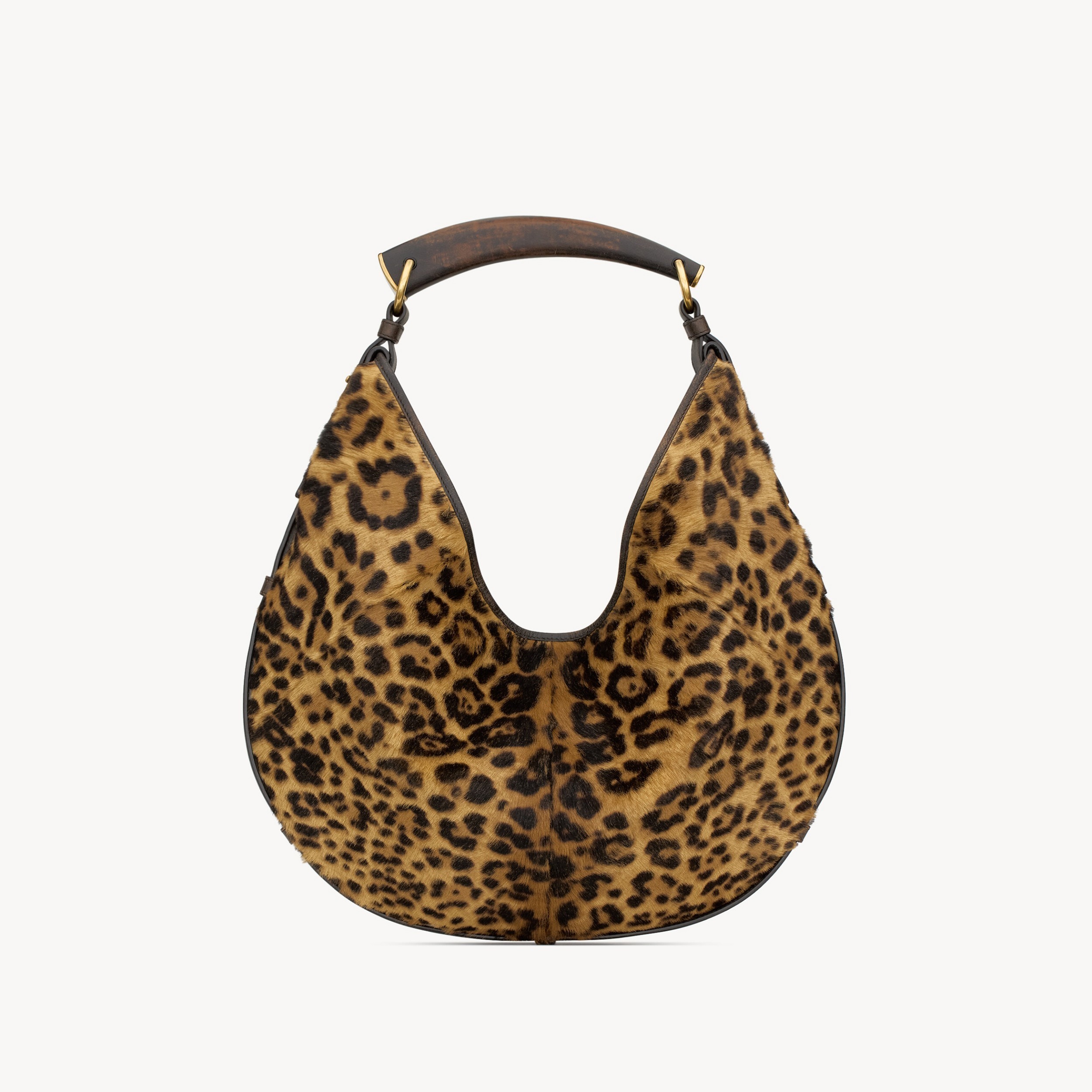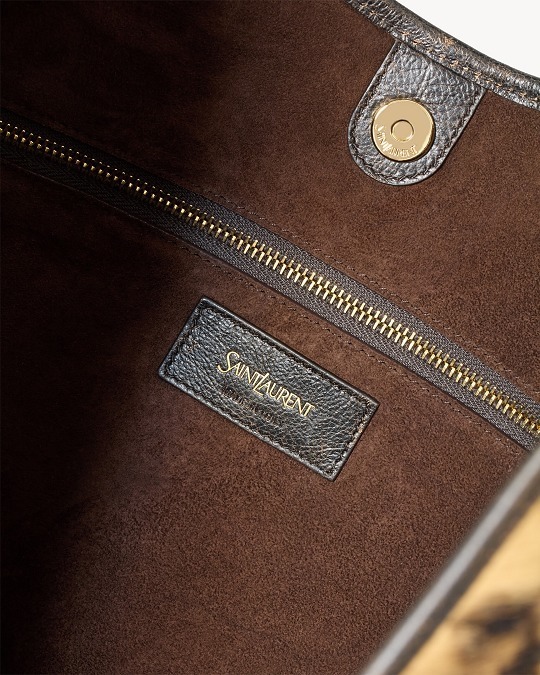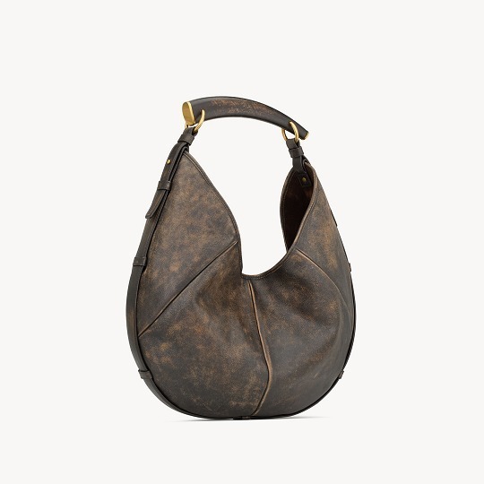 中号 Moobasa 手袋拥有更宽敞的容量和慵懒随性的气质,最特别的是这只深橡木色仿旧小牛皮版本,自带褪色效果的皮质与牛角提手所传达的 Safari Chic 格调颇为契合,另一只豹纹马毛版本则呈现更为野性不羁的气质。纯色款采用柔软细腻的 Courchevel 小牛皮制作而成,推出黑色、檀木色、赤霞朱红色3种配色,柔和廓形与硬朗手柄形成微妙反差,呈现既锋芒又从容的姿态。