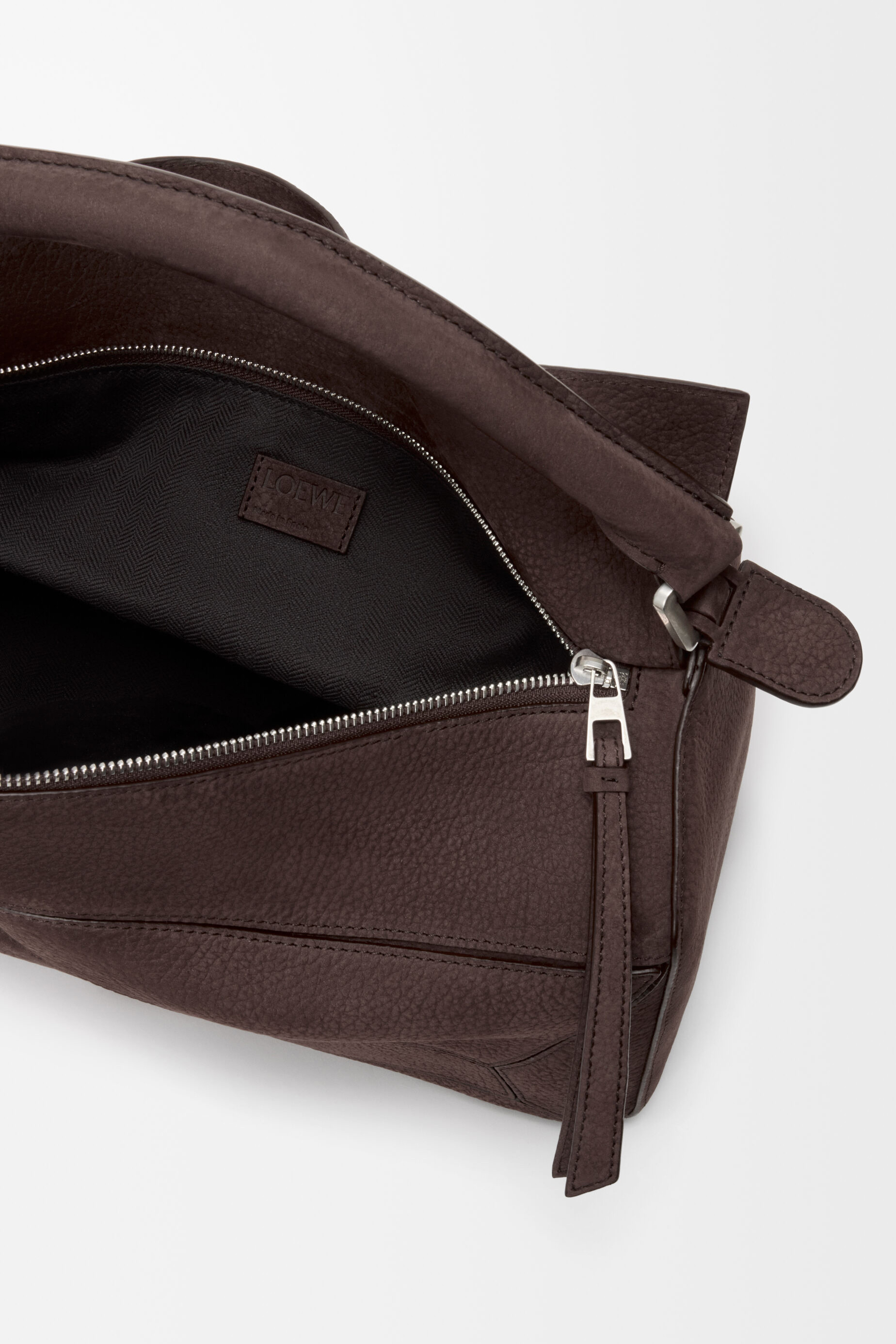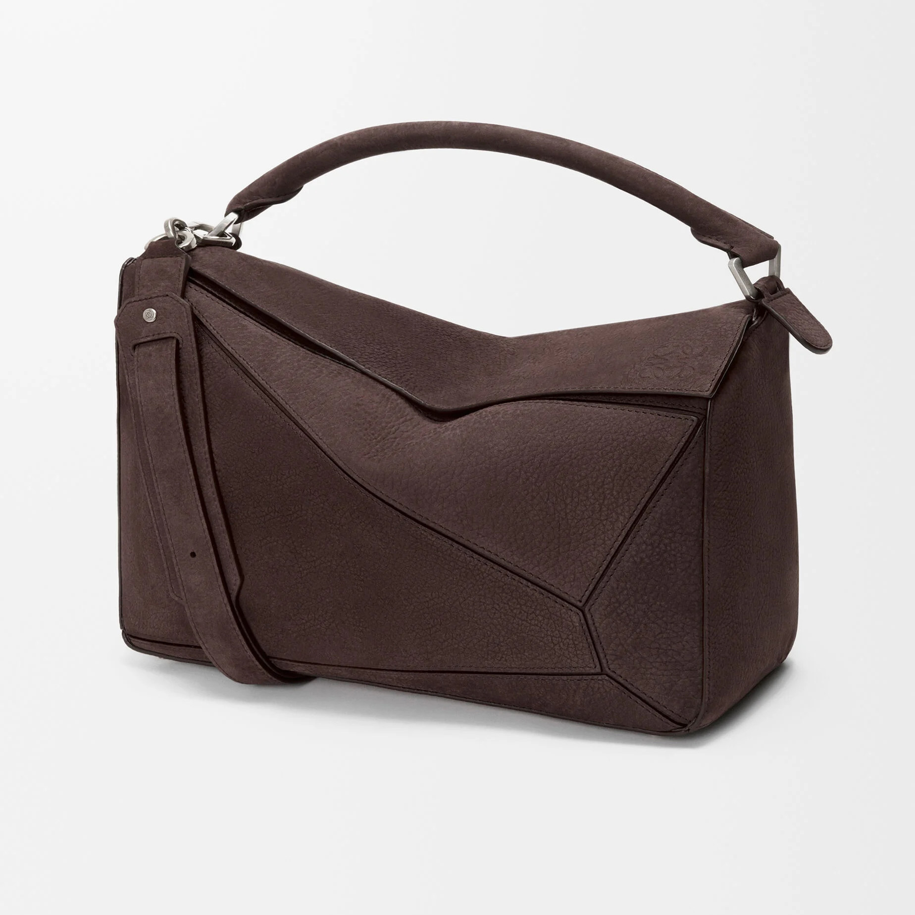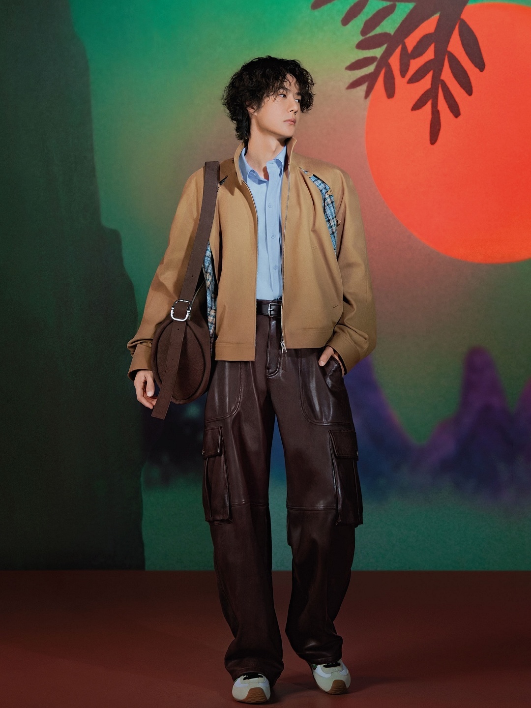 新春系列广告片中出镜的还有两款男士手袋作品——大号 Puzzle 手袋和 Loop 水桶包均采用布朗尼深棕粒面牛巴革制作而成,绒面触感与秋冬氛围颇为契合。Loop 手袋巧妙融合水桶包和旅行袋的功能,可通过滑扣切换纵向和横向两种背携方式,提升搭配指数。