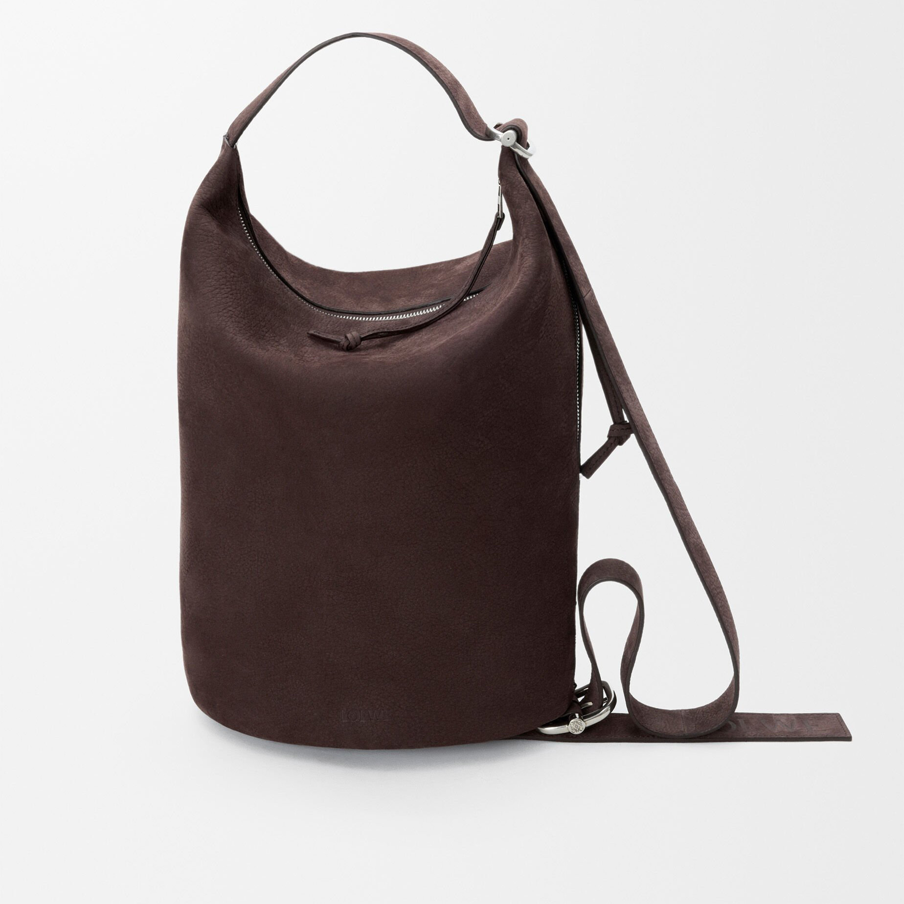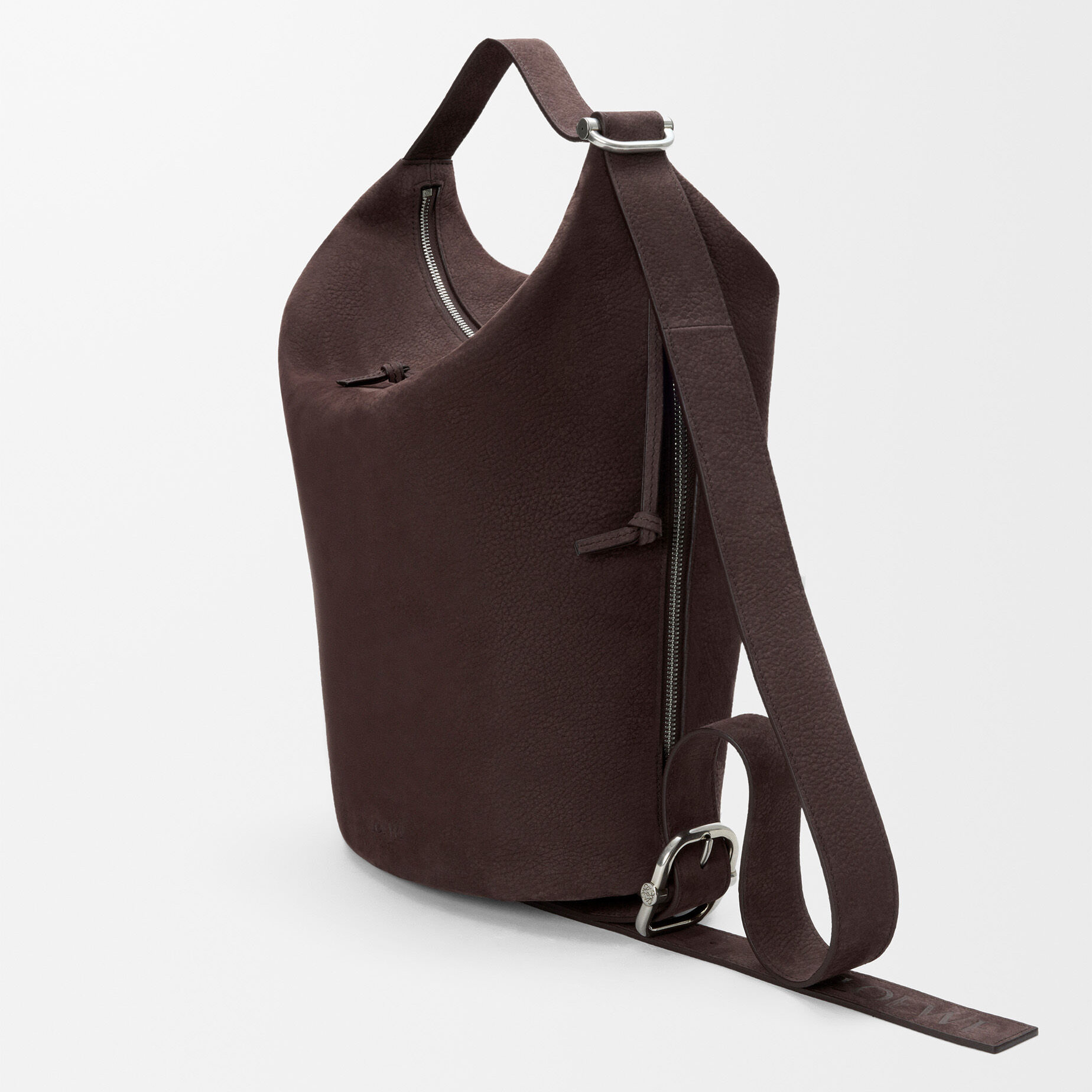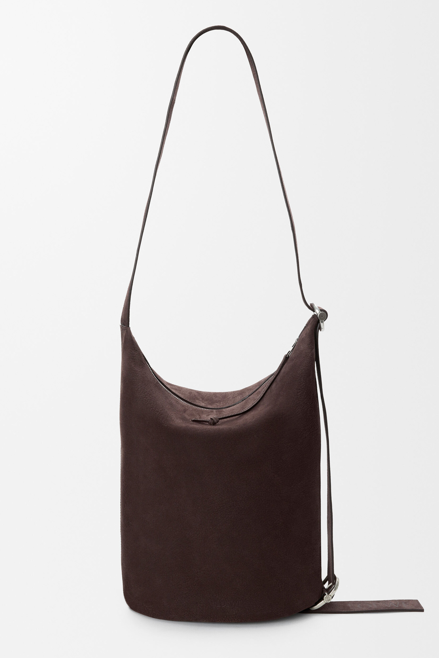 新春系列广告片中出镜的还有两款男士手袋作品——大号 Puzzle 手袋和 Loop 水桶包均采用布朗尼深棕粒面牛巴革制作而成,绒面触感与秋冬氛围颇为契合。Loop 手袋巧妙融合水桶包和旅行袋的功能,可通过滑扣切换纵向和横向两种背携方式,提升搭配指数。