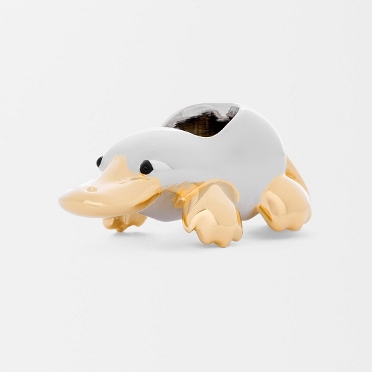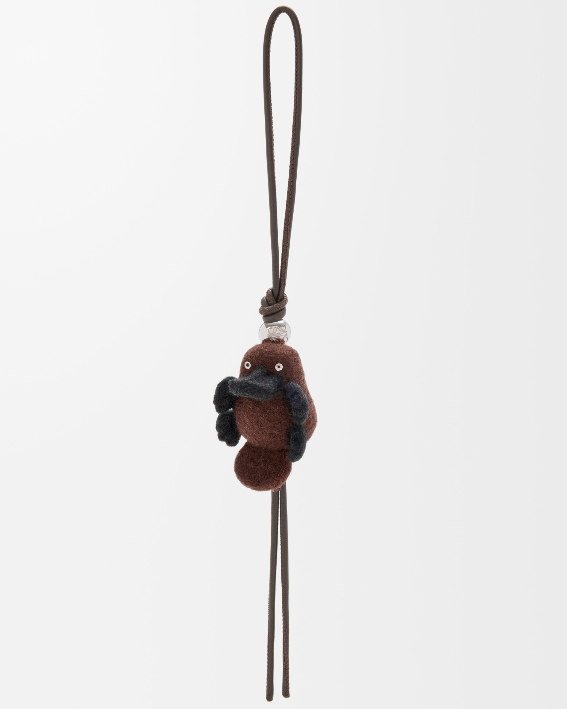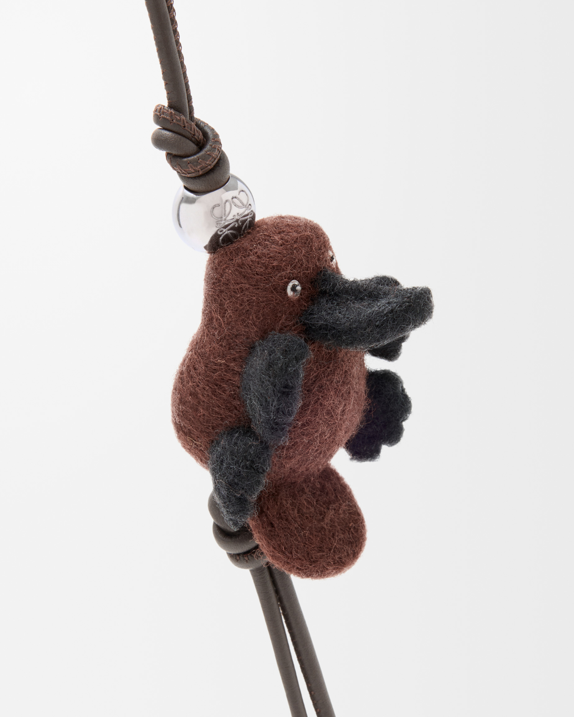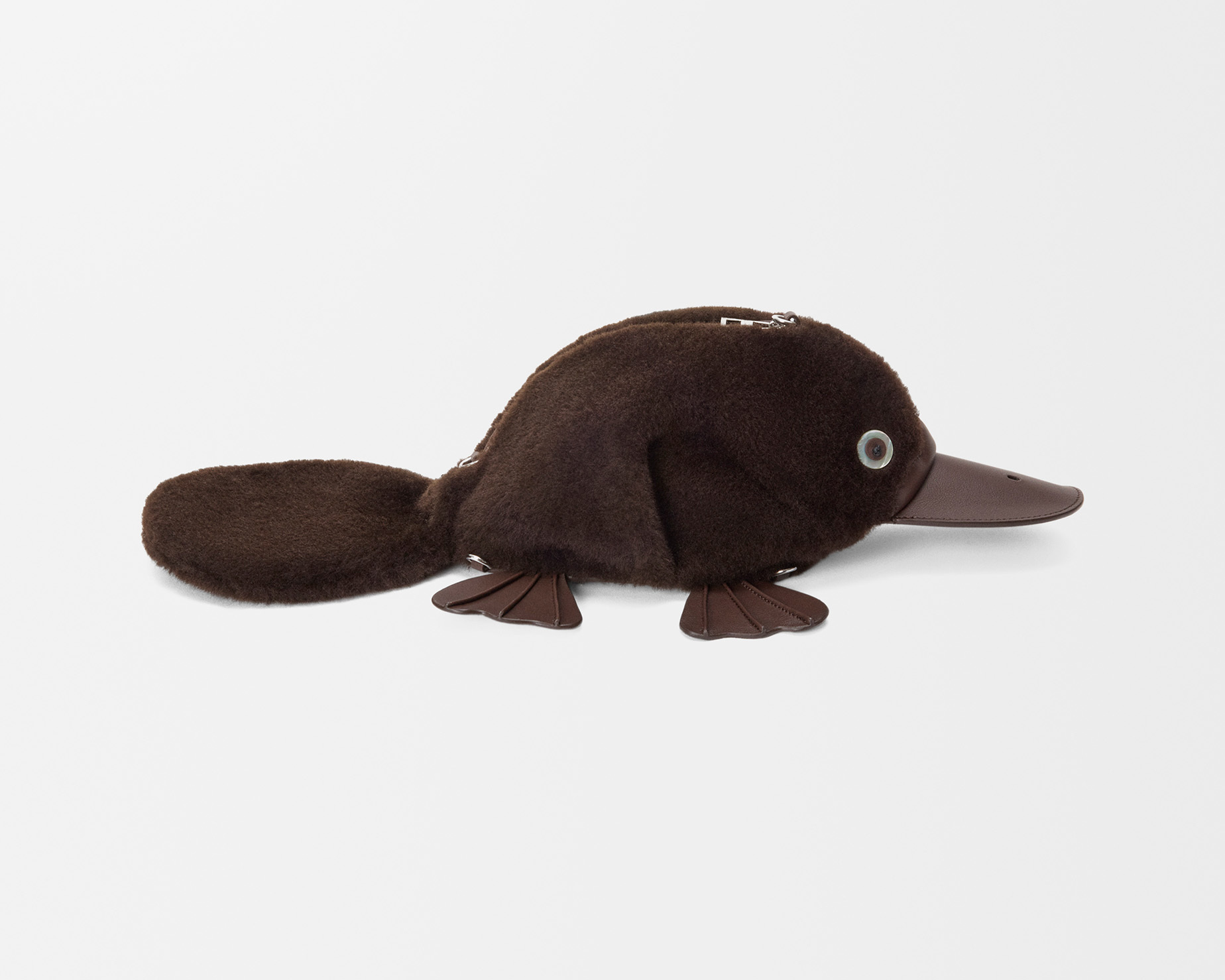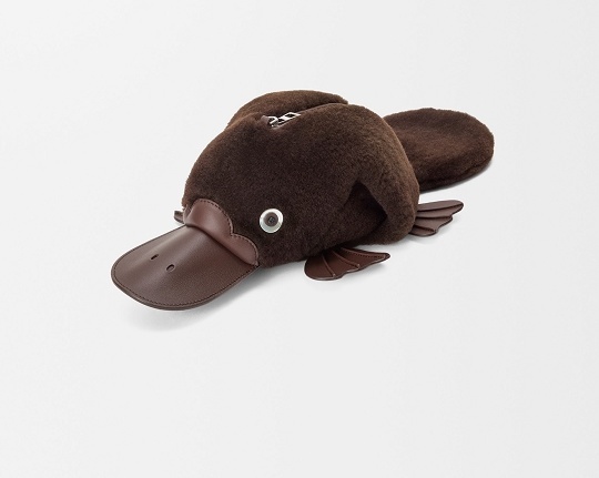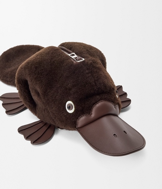 动画短片中现身的鸭嘴兽也化身为软萌治愈的包包和挂饰,采用棕色光泽小牛皮和羊毛打造,毛绒绒的身体搭配皮革拼缝的扁嘴巴、圆溜溜的眼珠子、可爱的脚蹼和大大的尾巴,让人忍不住想拥入怀中。