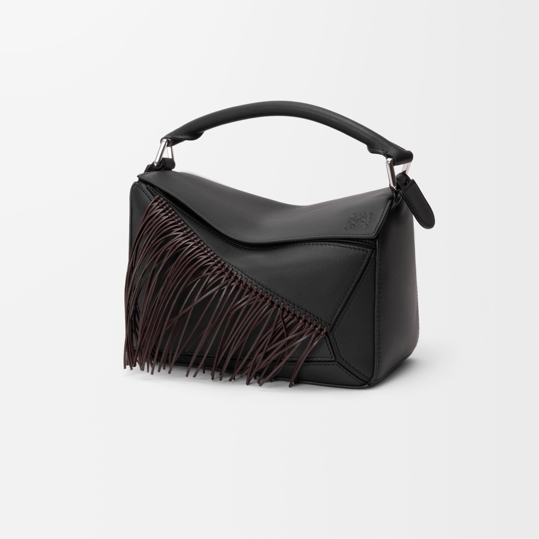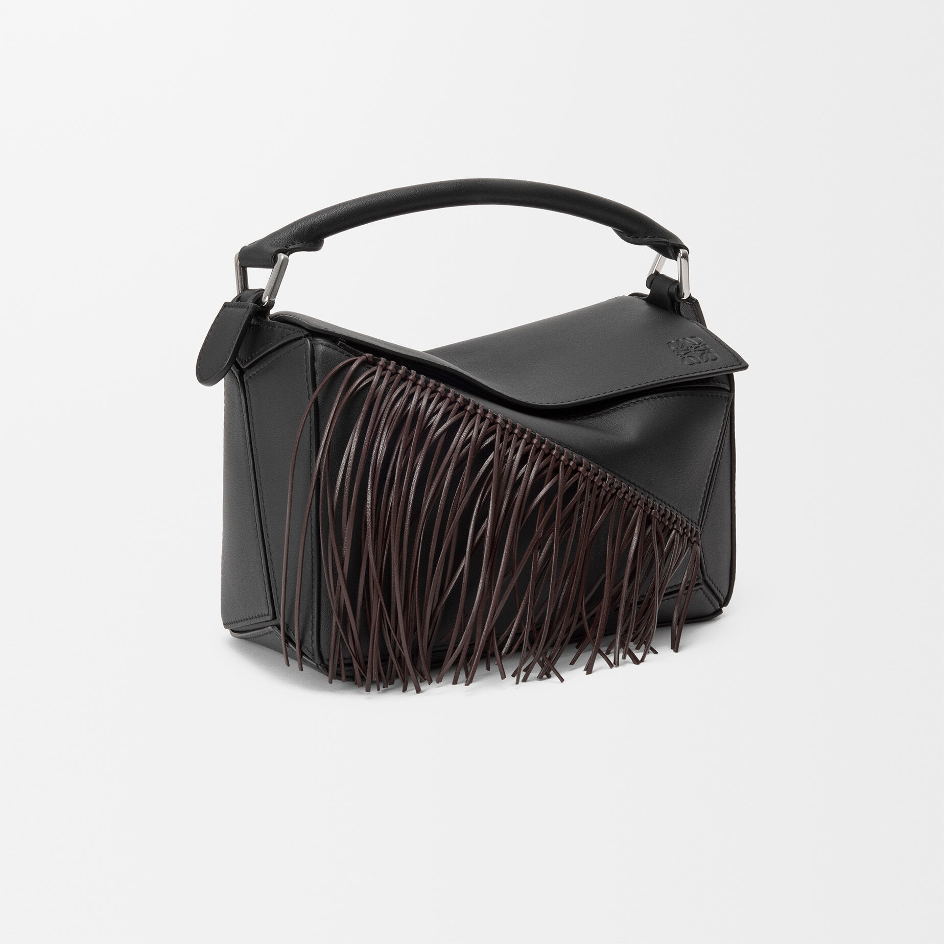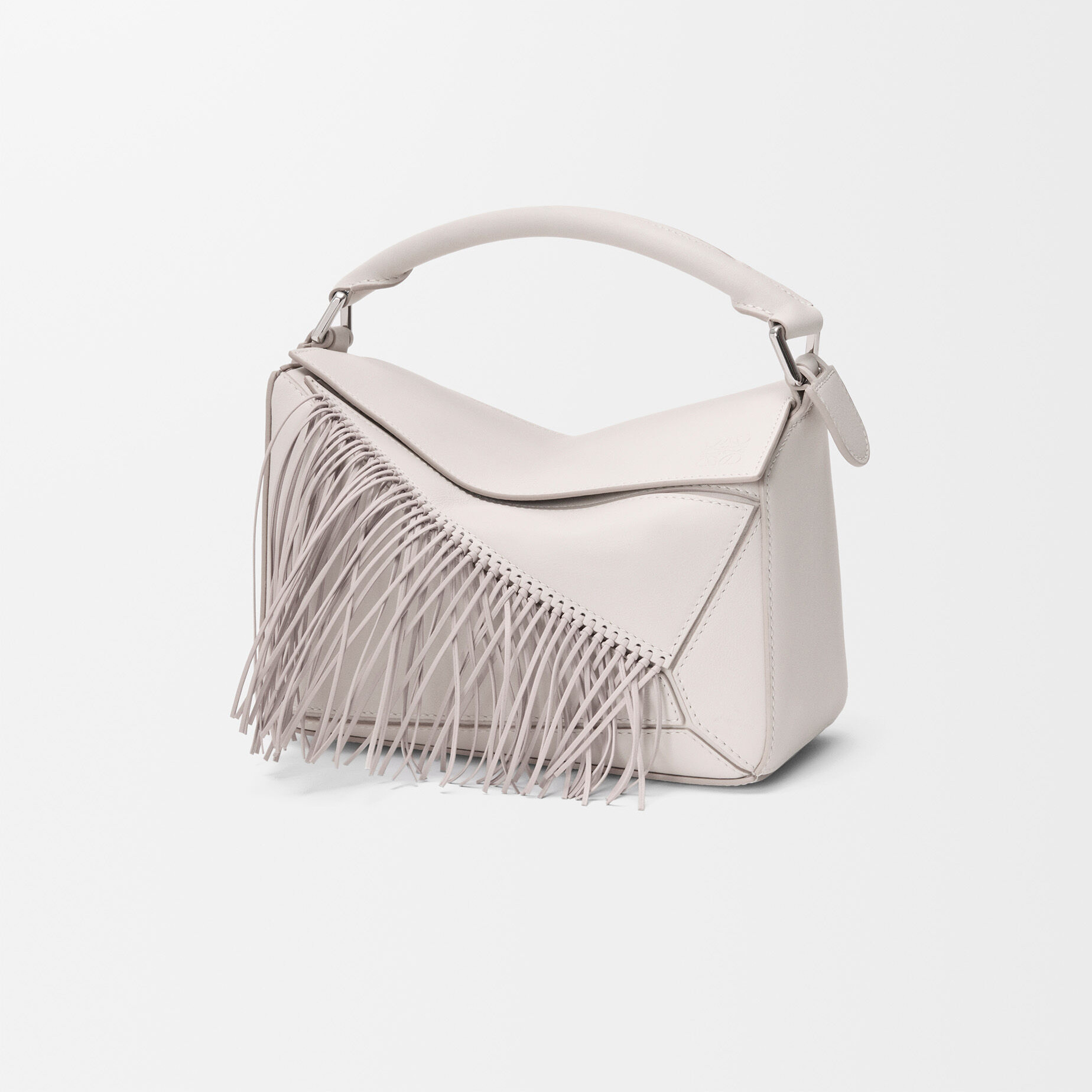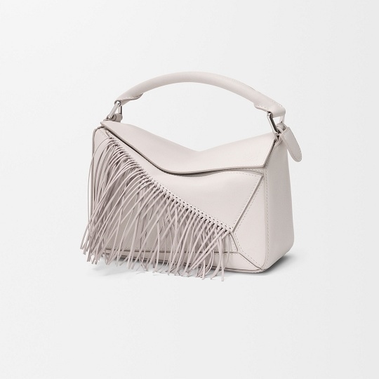 新春特别款 Fringe Puzzle 手袋以飞扬的马鬃为灵感,通过编织工艺在包身点缀纤长轻盈的皮革流苏。包包采用经典牛皮革制作而成,推出柔白色/浅轻灵灰和黑色/深栗棕色2种配色,让人联想到自由驰骋的骏马。