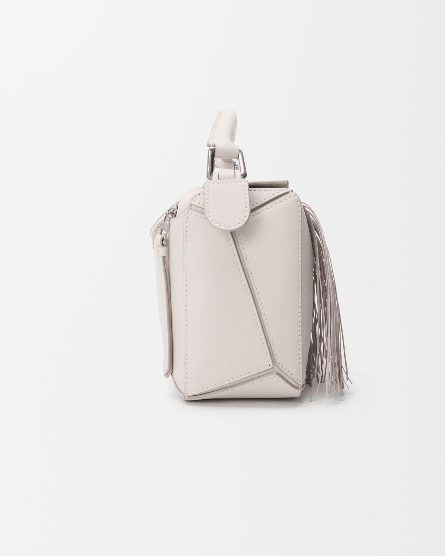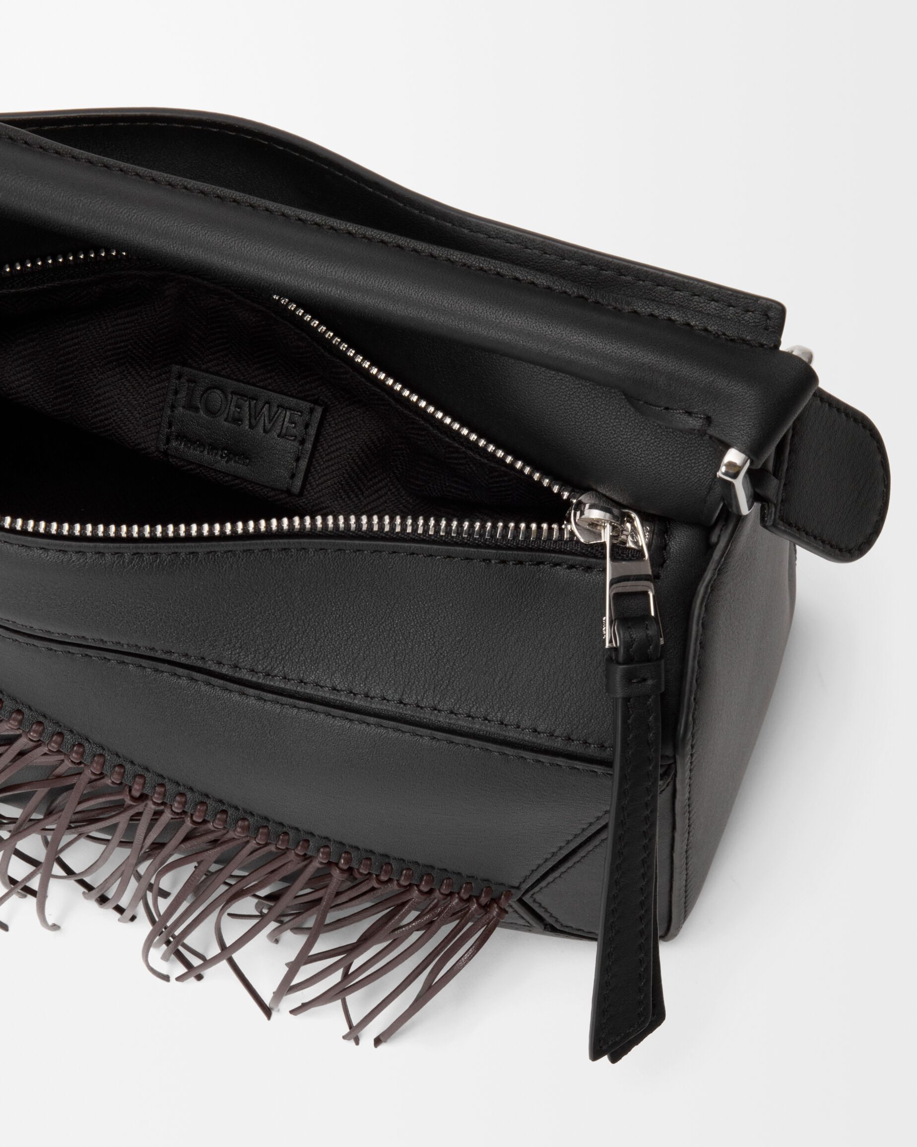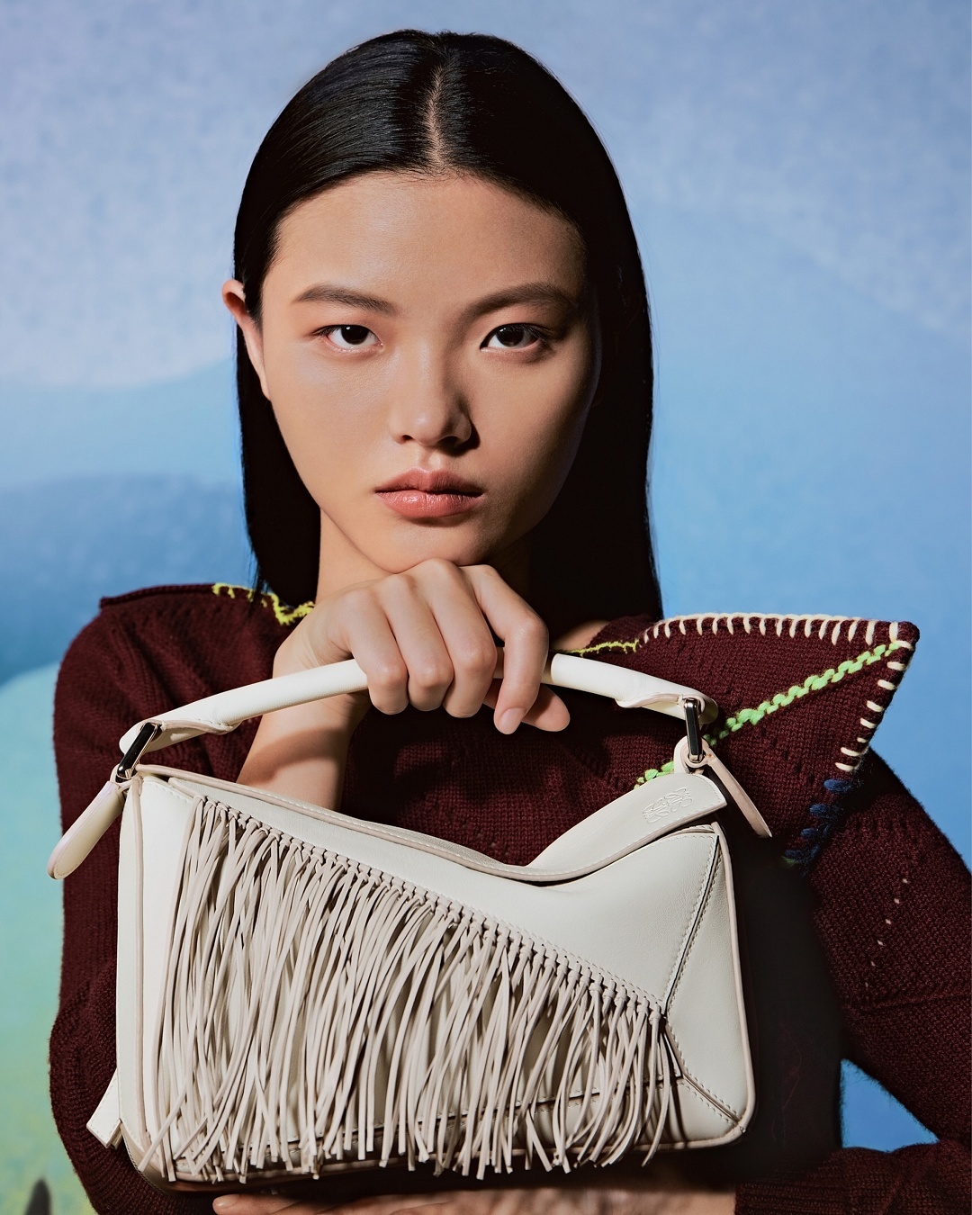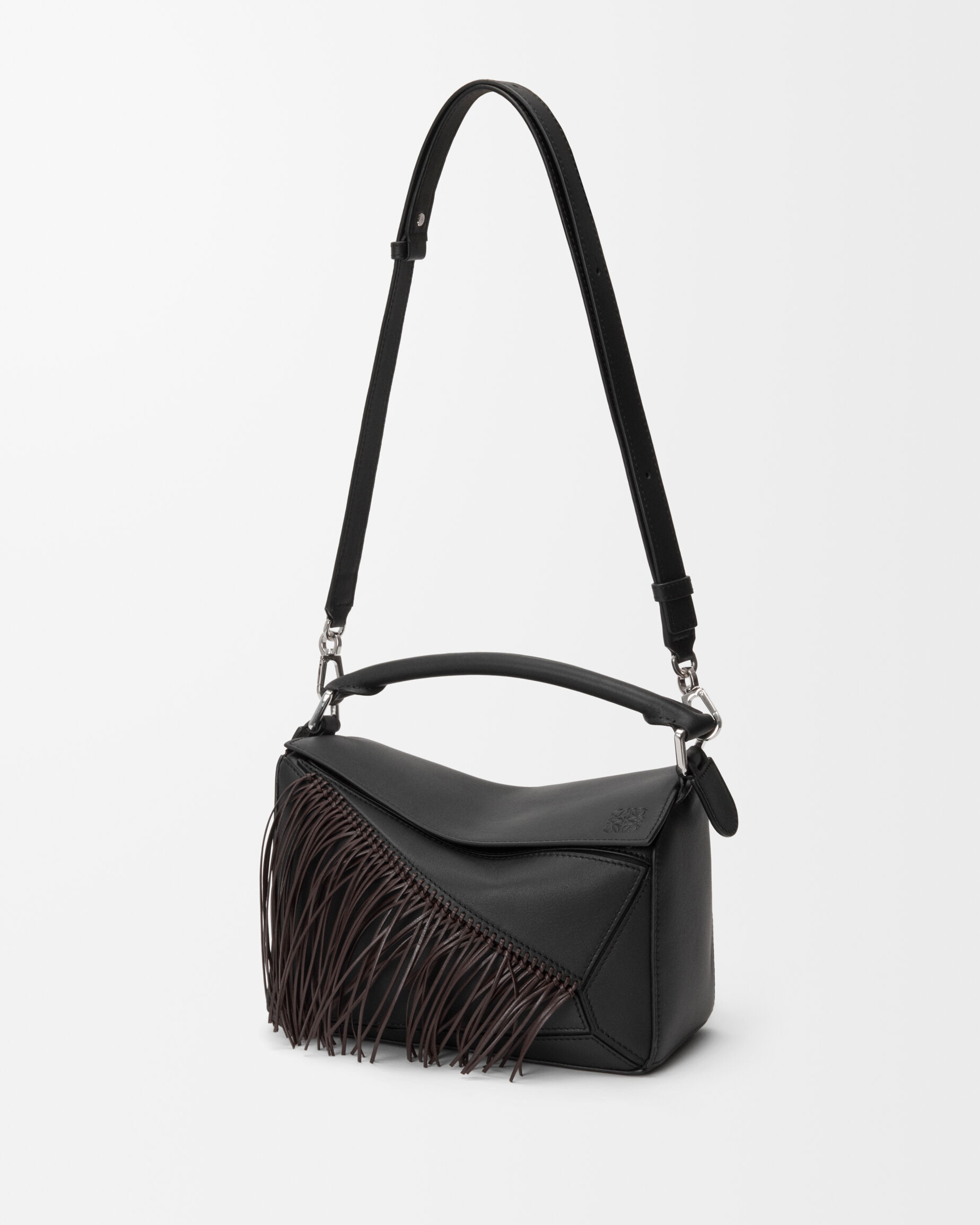 新春特别款 Fringe Puzzle 手袋以飞扬的马鬃为灵感,通过编织工艺在包身点缀纤长轻盈的皮革流苏。包包采用经典牛皮革制作而成,推出柔白色/浅轻灵灰和黑色/深栗棕色2种配色,让人联想到自由驰骋的骏马。