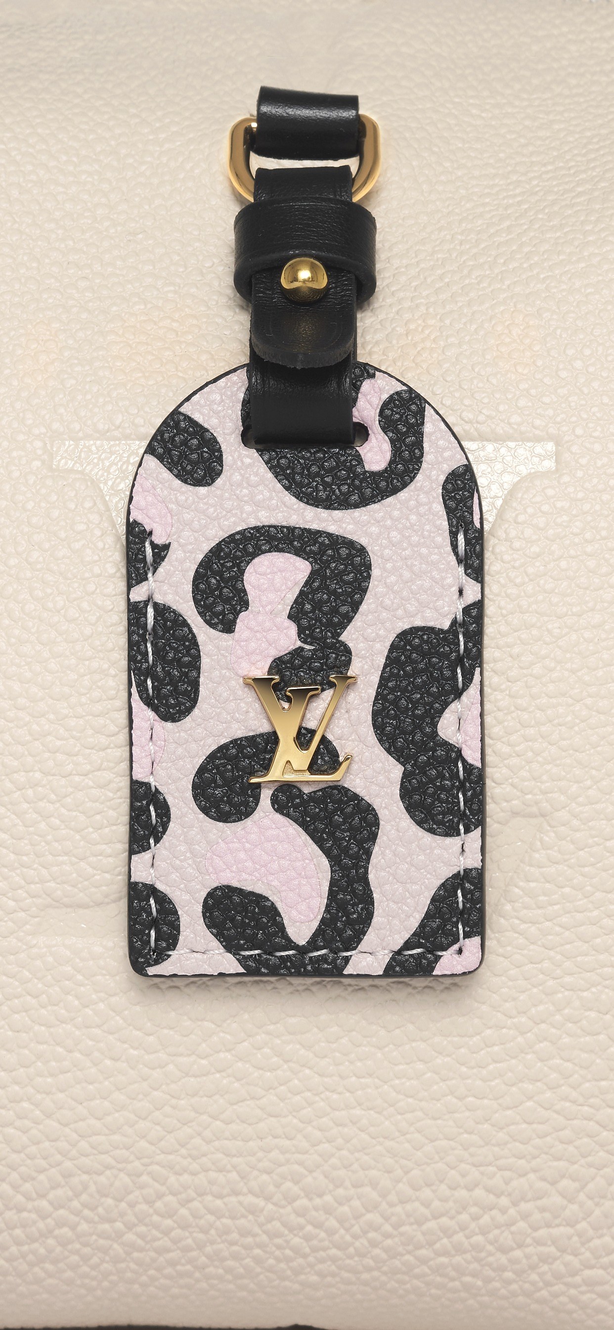 Petite Malle Souple 清新软萌,在中央悬挂的皮革吊牌上印染粉色豹纹图案,不仅散发豹纹本身的性感气质,粉色调的加持又夹杂甜美女孩气息。