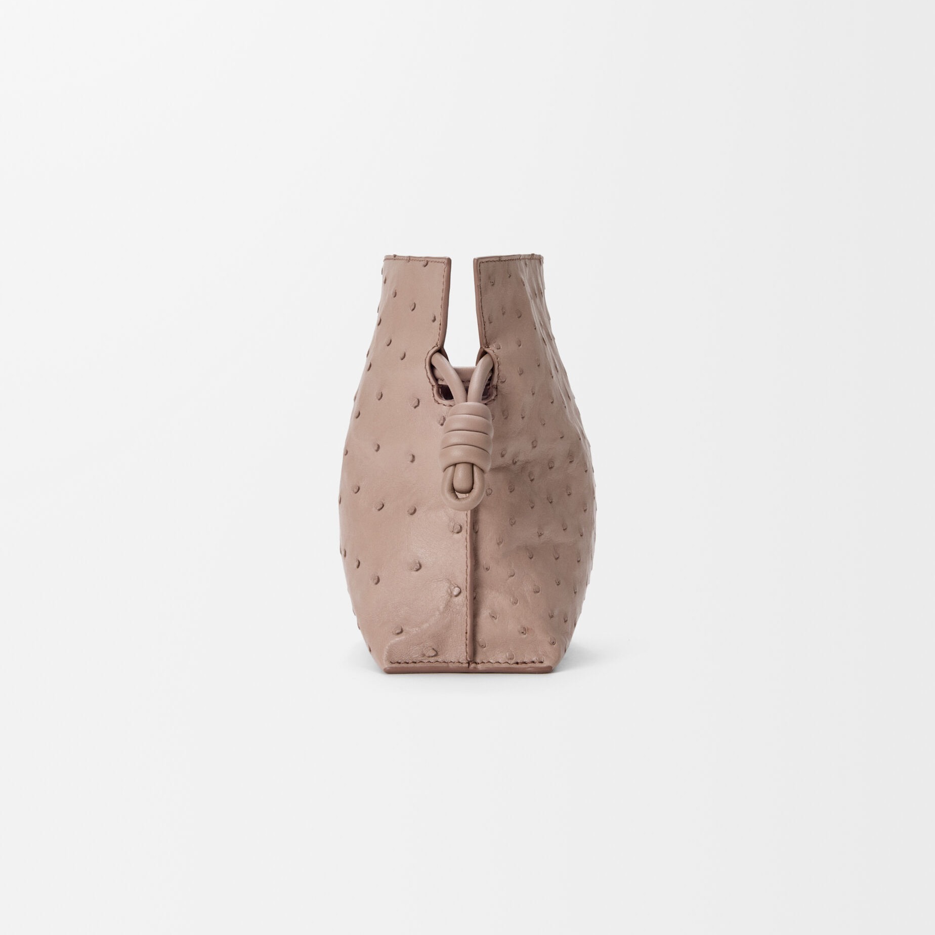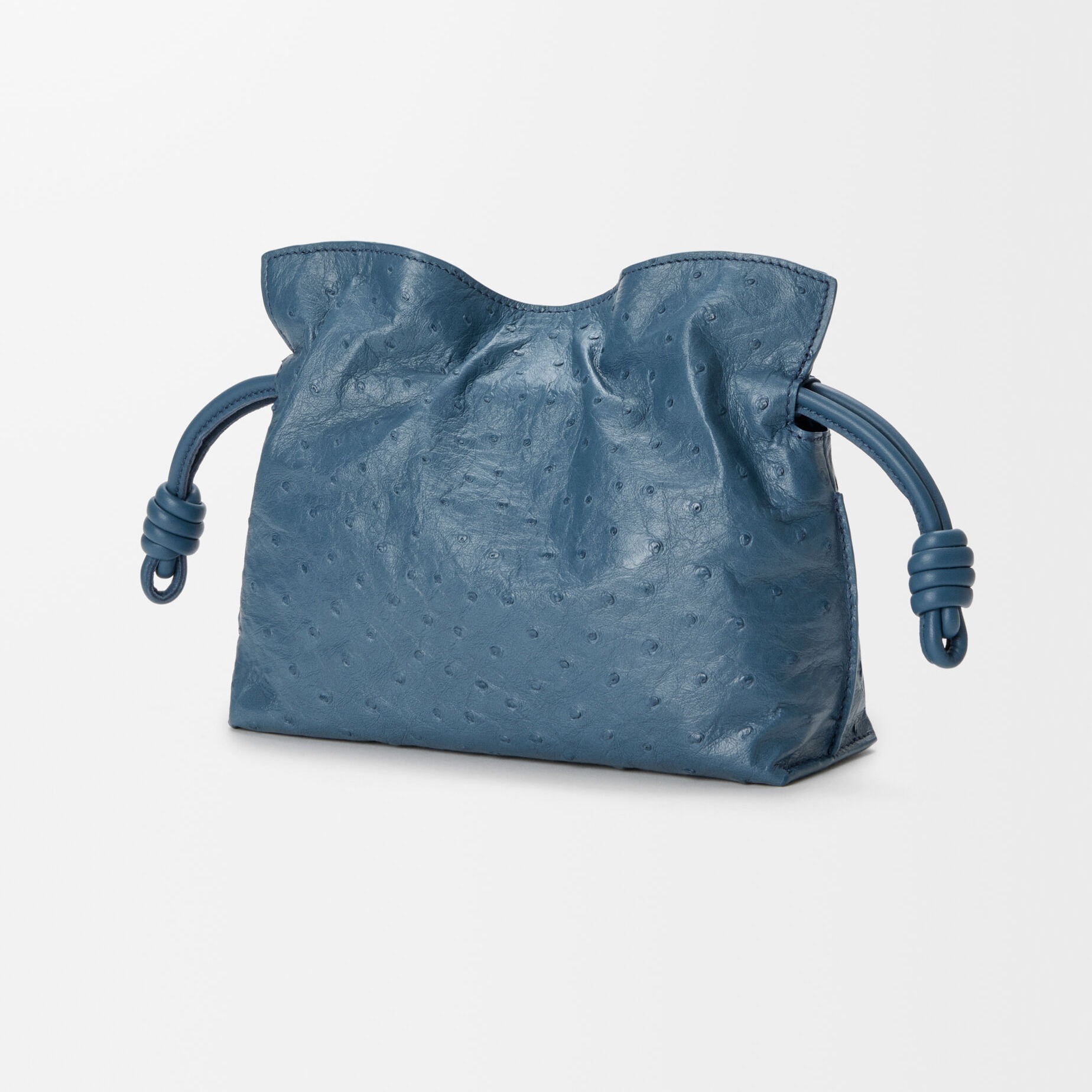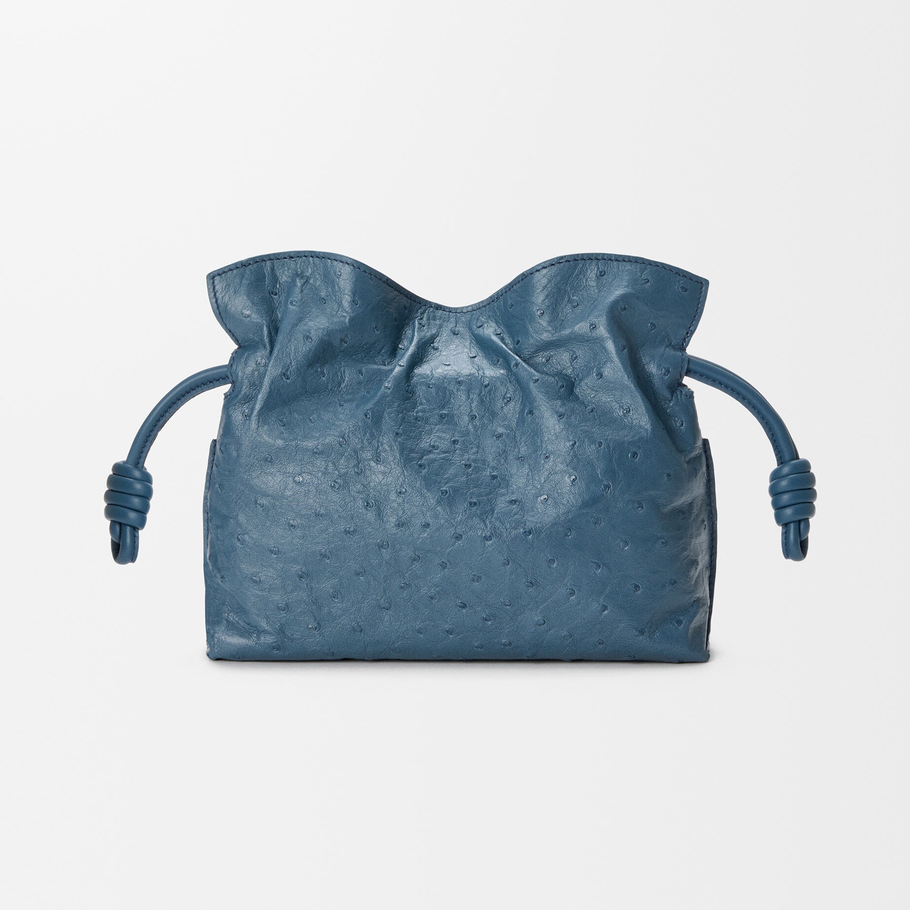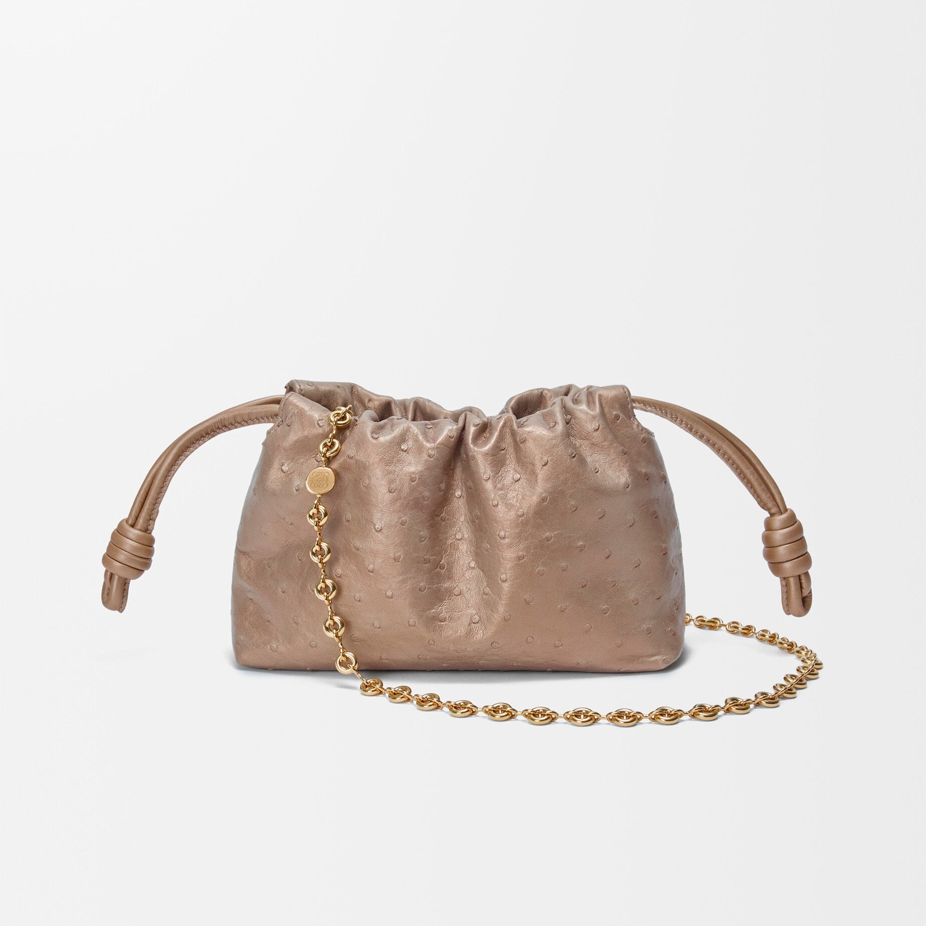 另一组采用鸵鸟皮演绎的是 Flamenco 手袋,柔韧轻盈的皮质塑造出慵懒的云朵廓形,搭配抽绳束口和盘绕结装饰。包包的设计灵感来自西班牙传统弗拉门戈舞(Flamenco),自然抽褶的廓形犹如舞者的浪漫裙摆。