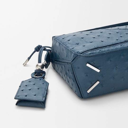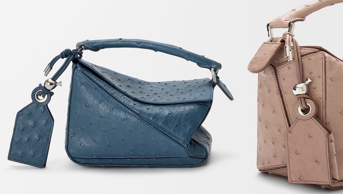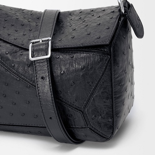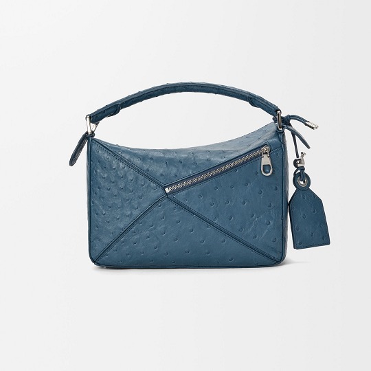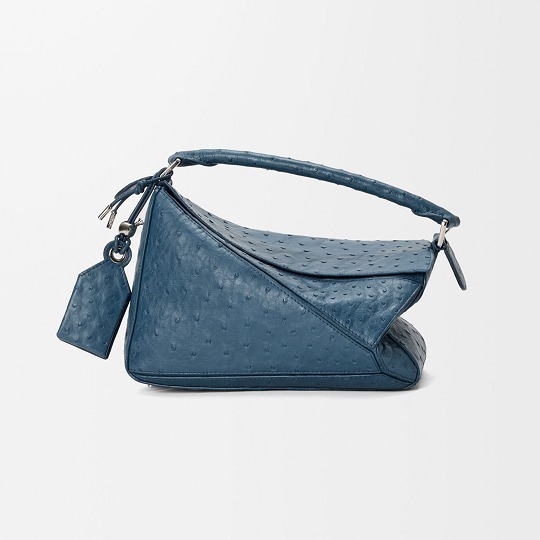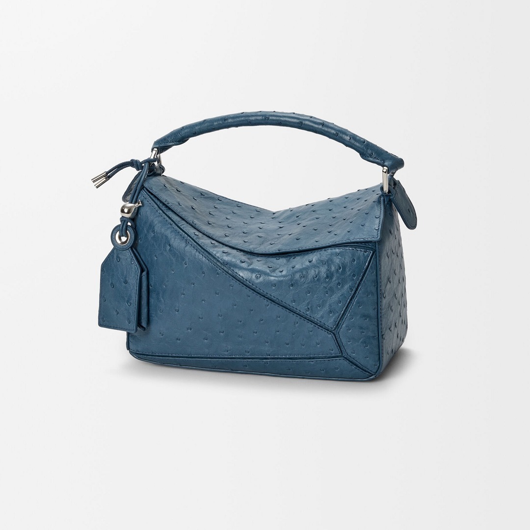 LOEWE 刚刚上架一组鸵鸟皮手袋作品,采用柔软轻盈的鸵鸟皮材质焕新演绎品牌经典 Puzzle 和 Flamenco 手袋,渲染黑色、丹宁蓝、灰褐色等实用中性色调。鸵鸟皮以其独一无二的小圆颗粒纹理见长,独特的凸面毛孔具有良好的透气性与舒适触感,皮层内部富含油脂,随着时间流逝会透出独有的油亮光泽。