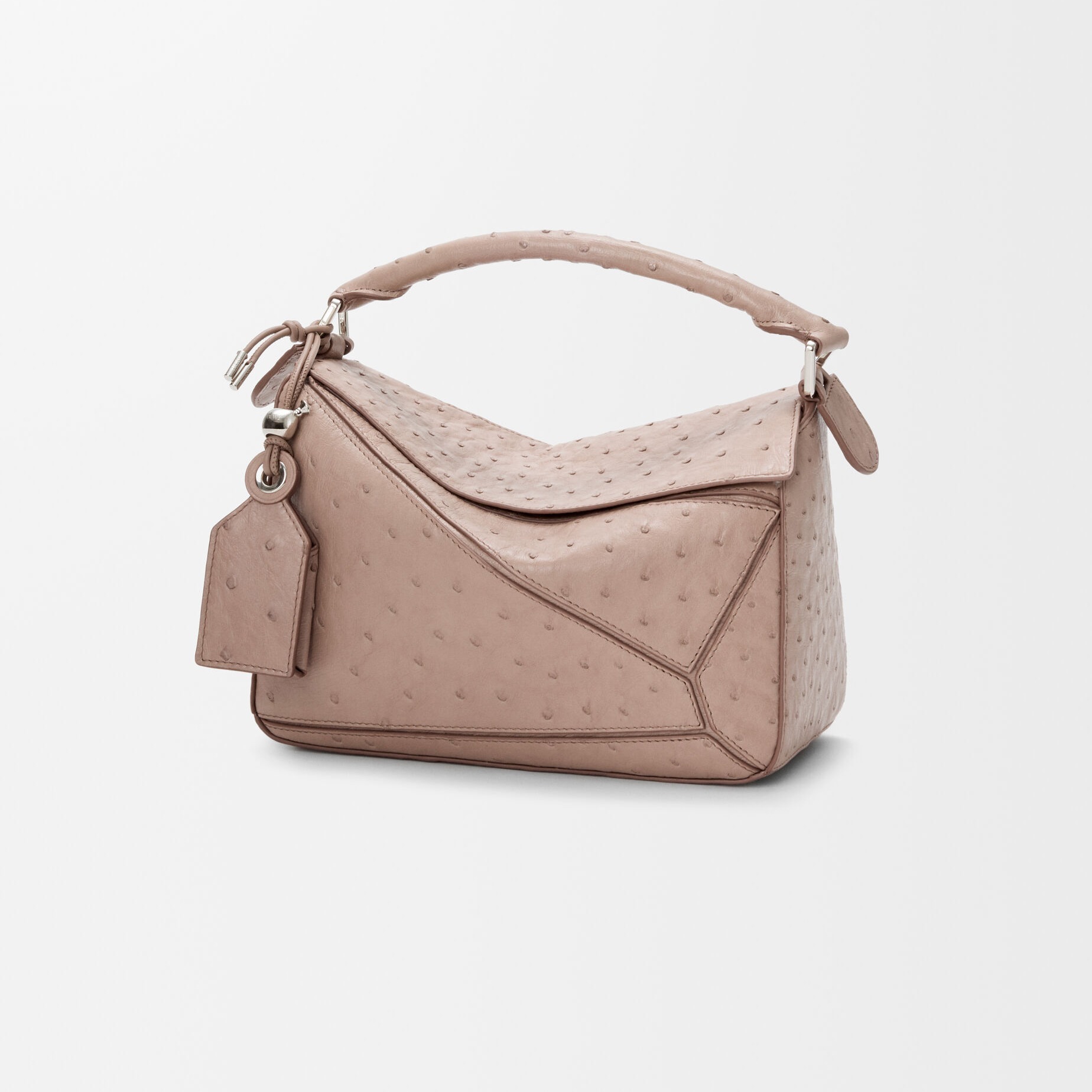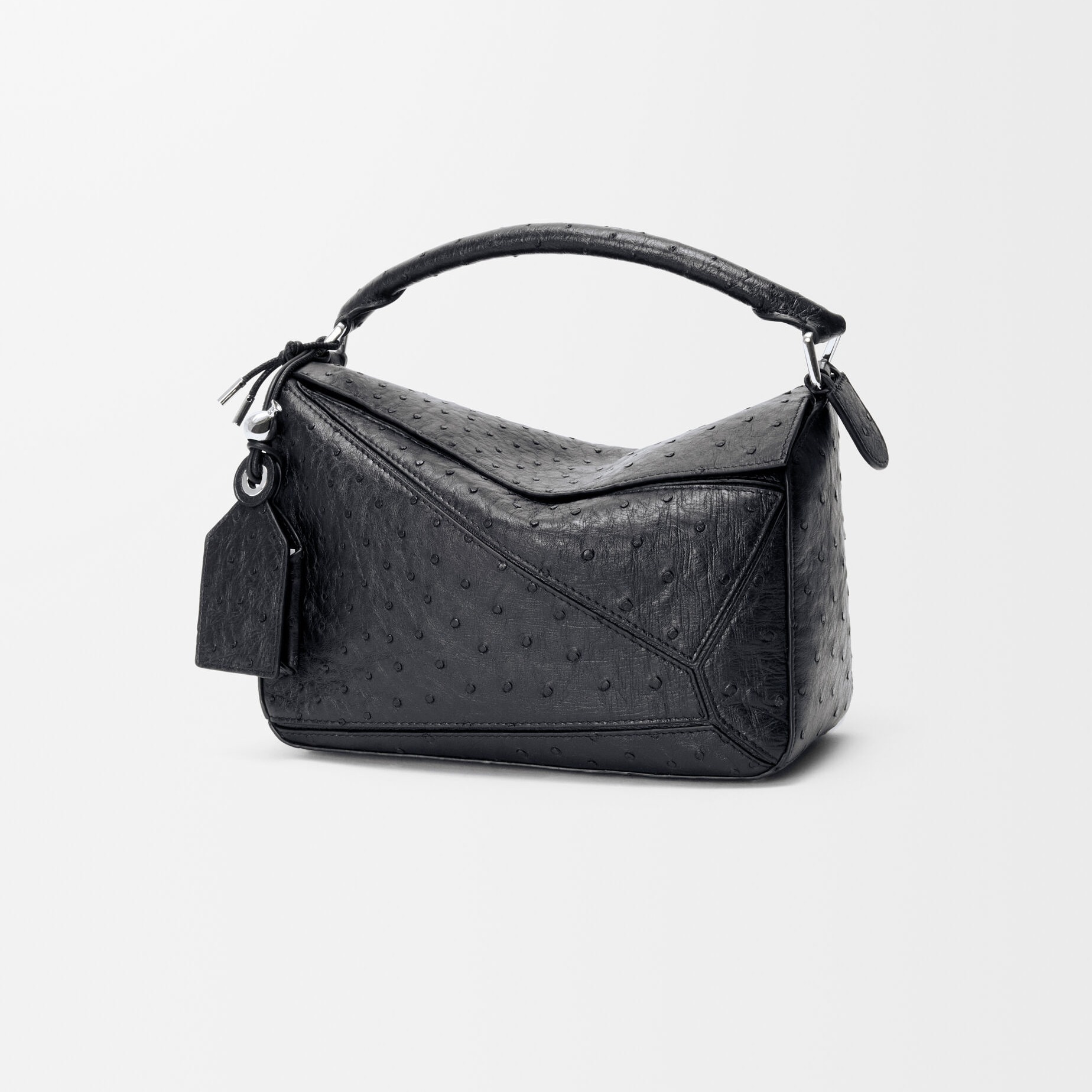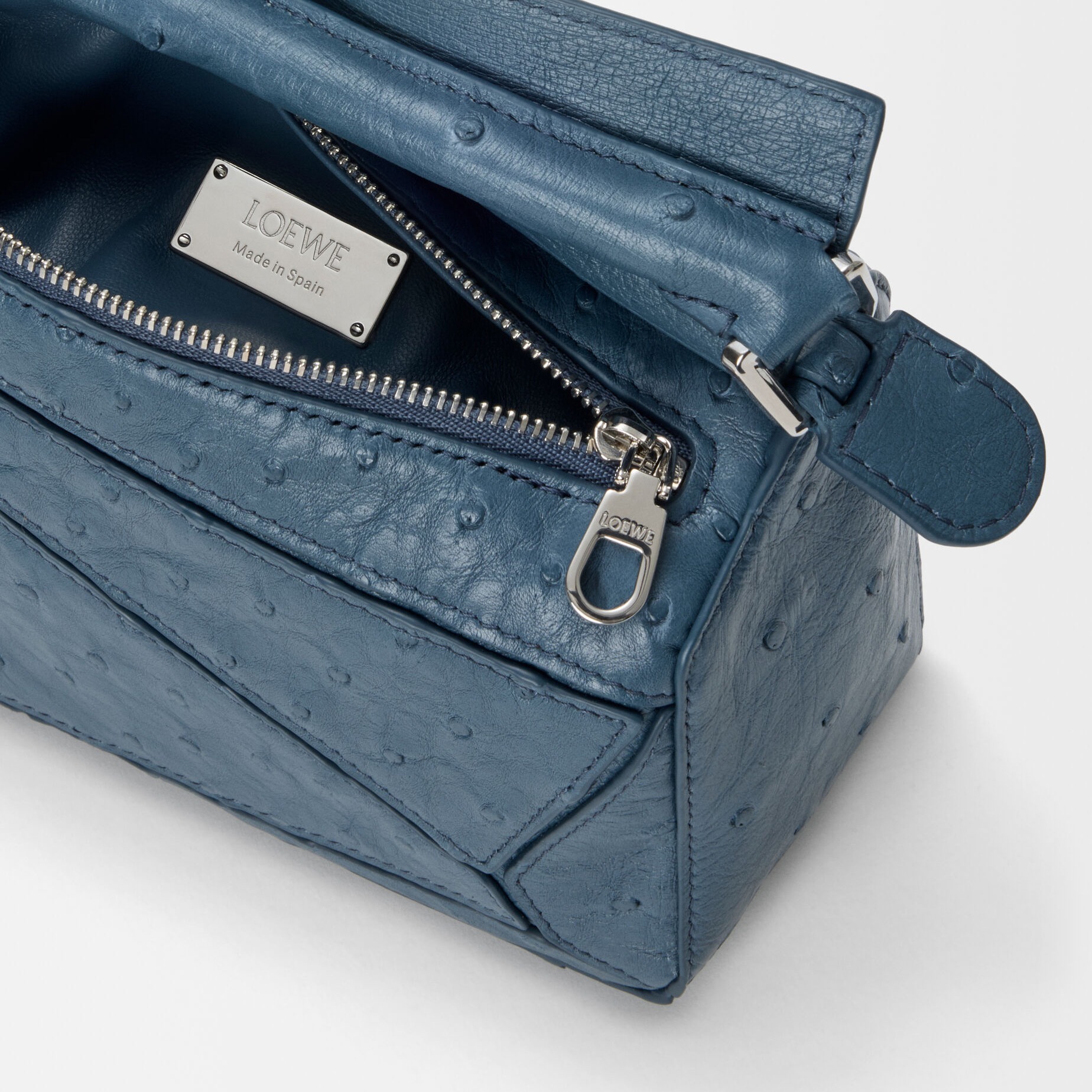 LOEWE 刚刚上架一组鸵鸟皮手袋作品,采用柔软轻盈的鸵鸟皮材质焕新演绎品牌经典 Puzzle 和 Flamenco 手袋,渲染黑色、丹宁蓝、灰褐色等实用中性色调。鸵鸟皮以其独一无二的小圆颗粒纹理见长,独特的凸面毛孔具有良好的透气性与舒适触感,皮层内部富含油脂,随着时间流逝会透出独有的油亮光泽。